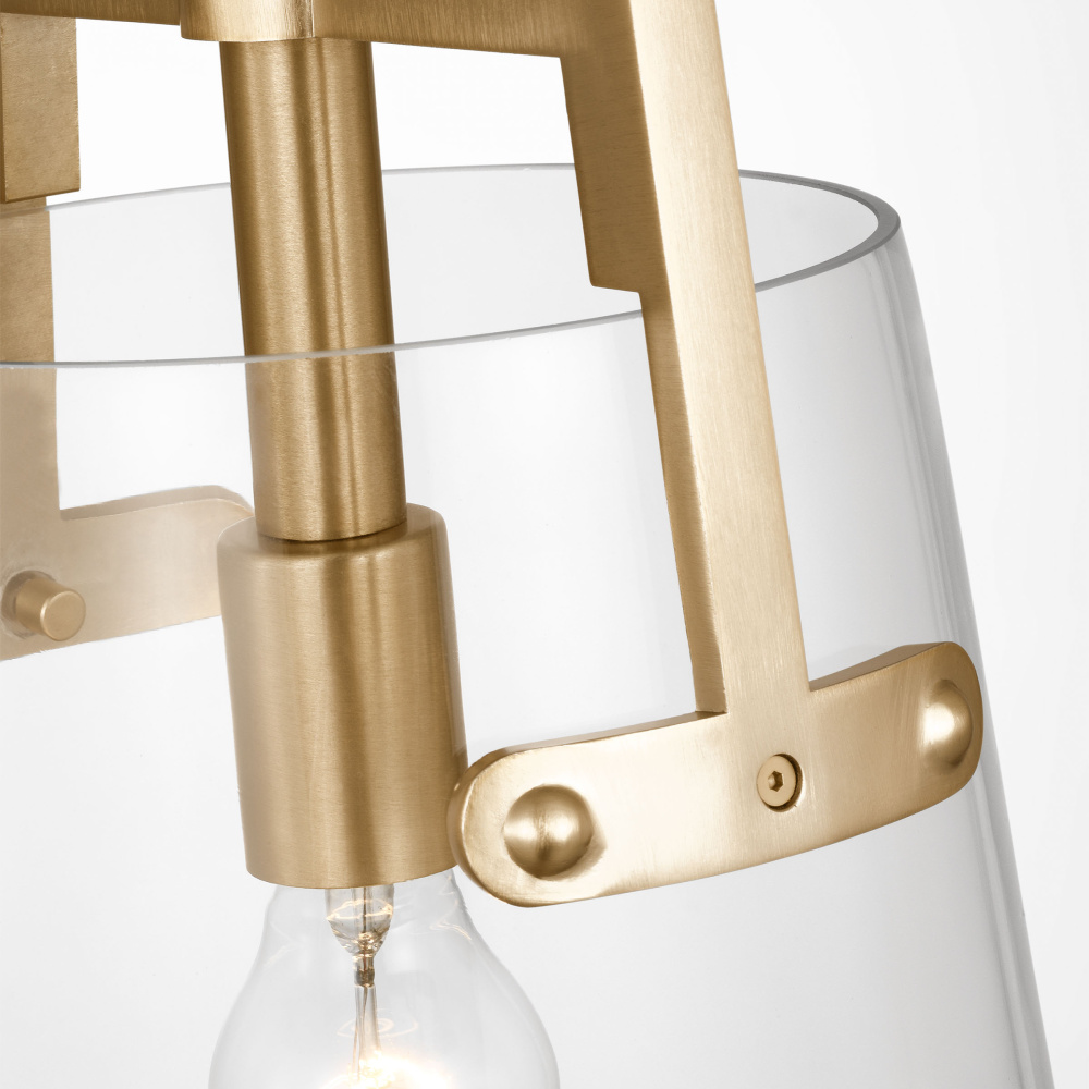 Crafted with Steel in a Satin Brass finish with clear glass shade