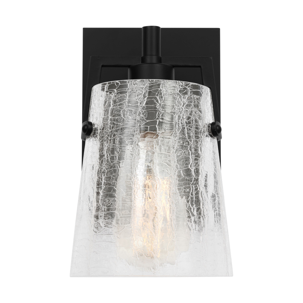 Crafted with Steel in a Midnight Black finish with clear crackle glass shade