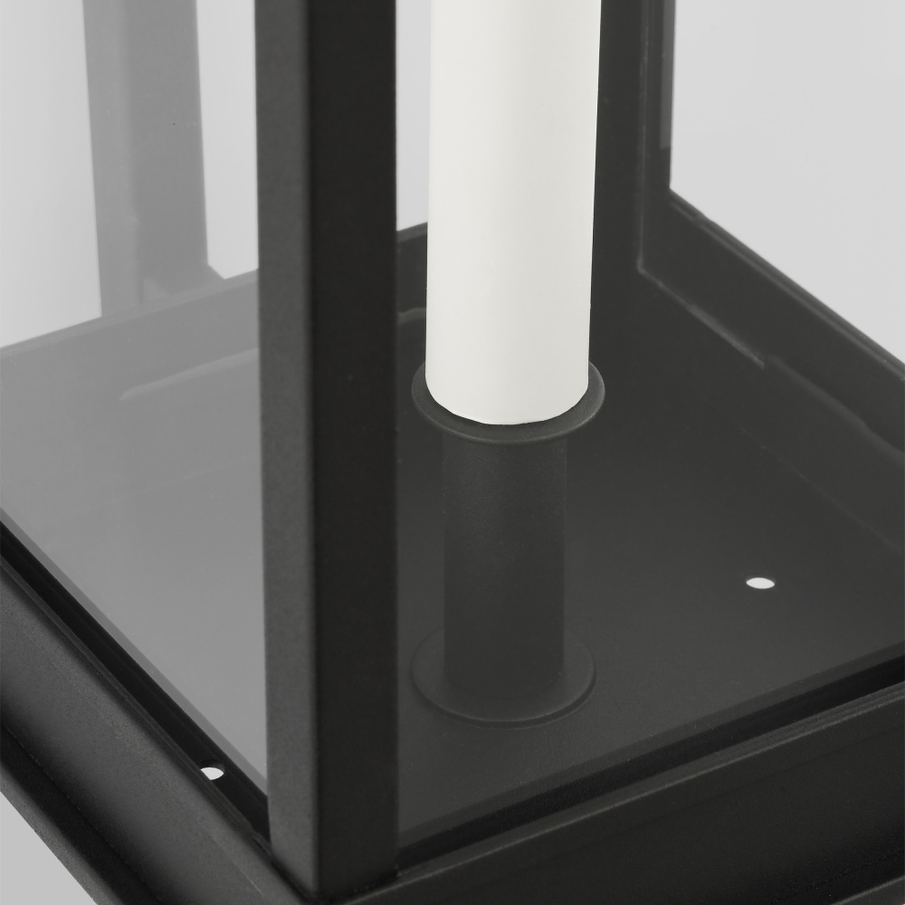 The Cupertino outdoor series by Chapman & Myers was created to embody a more transitional classic rectangular lantern profile. Rather than feature filament tube bulbs, each lantern has a more traditional candelabra with cream candle tubes to complete the design. The top and bottom of each lantern have an almost architectural stepped detailing.