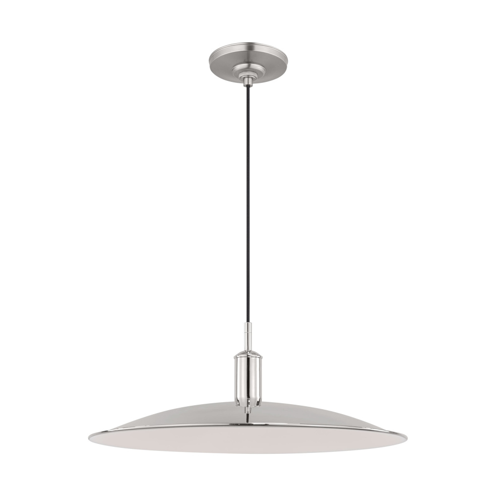 Thomas O’Brien’s Dash Pendant offer a fresh take on classic Danish metal lighting, reducing the design to its purest and most essential form. The minimalist silhouette emphasizes the beauty of its metallic finish, while an integrated LED light source adds a contemporary edge, ensuring both style and energy efficiency. Thoughtfully versatile, the Dash pendant complements a wide range of interior spaces, whether hanging gracefully over a kitchen island, lining a corridor with understated elegance, or serving as a refined focal point in a bedroom.