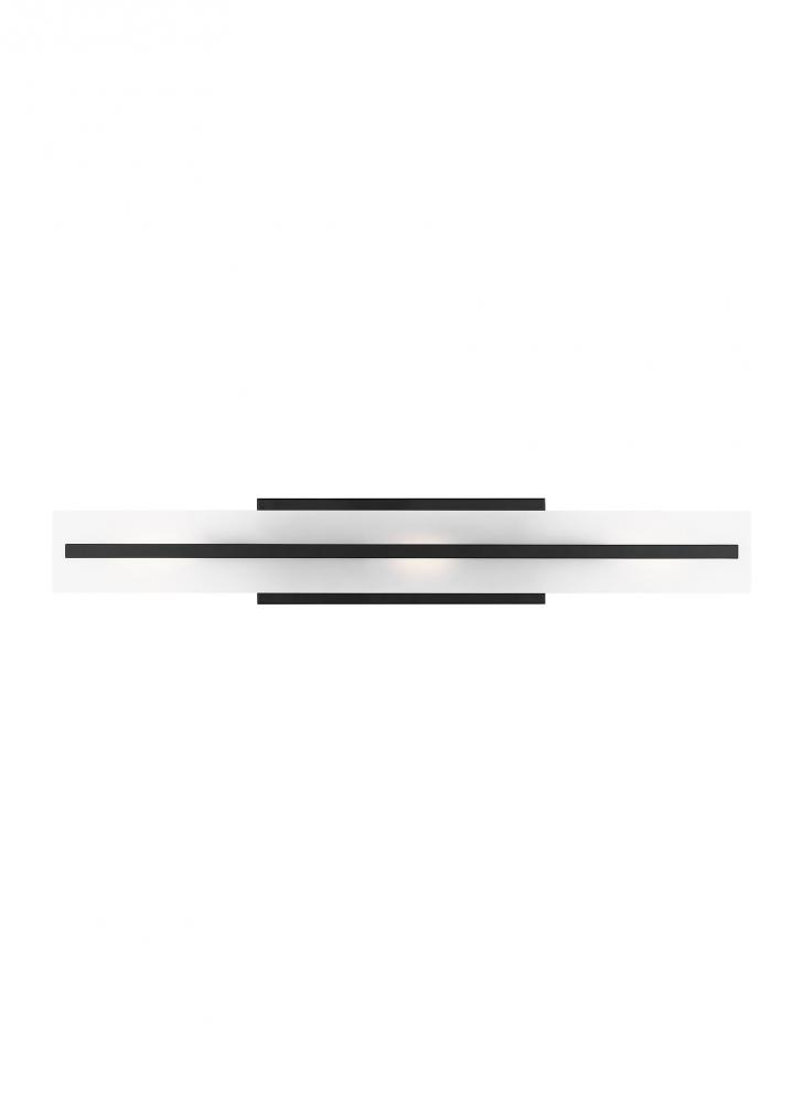 The Dex three light vanity fixture in Midnight Black is a contemporary design with three finishes and white acrylic diffuser creating a crisp look and bright clean ambiance. With the clean lines and classic styling, the Dex vanity series is versatile enough to be used in any transitional setting.