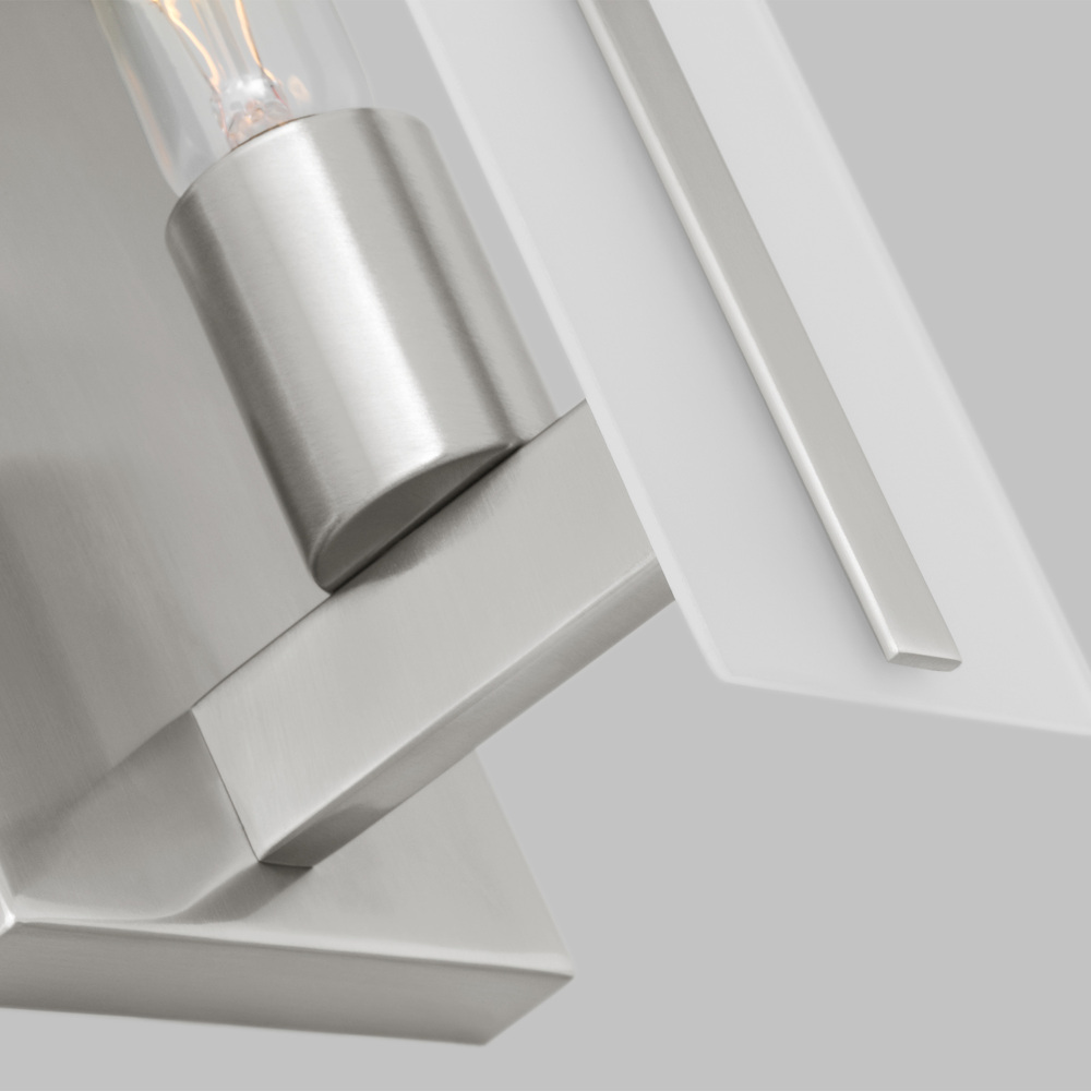The Dex one light wall sconce in brushed nickel silver is a contemporary design with three finishes and white acrylic diffuser creating a crisp look and bright clean ambiance. With the clean lines and classic styling, the Dex vanity series is versatile enough to be used in any transitional setting.