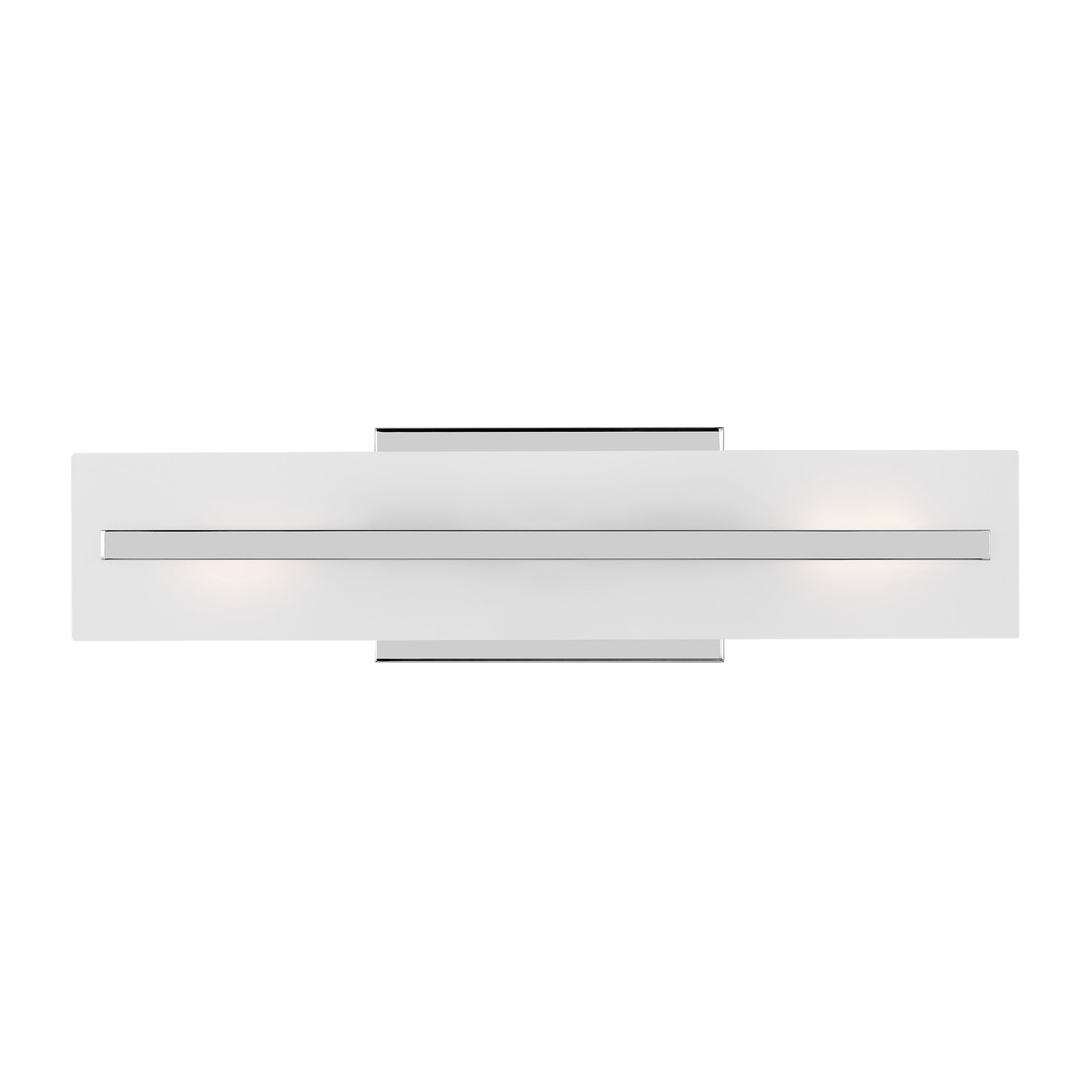 The Dex two light vanity fixture in Chrome is a contemporary design with three finishes and white acrylic diffuser creating a crisp look and bright clean ambiance. With the clean lines and classic styling, the Dex vanity series is versatile enough to be used in any transitional setting.