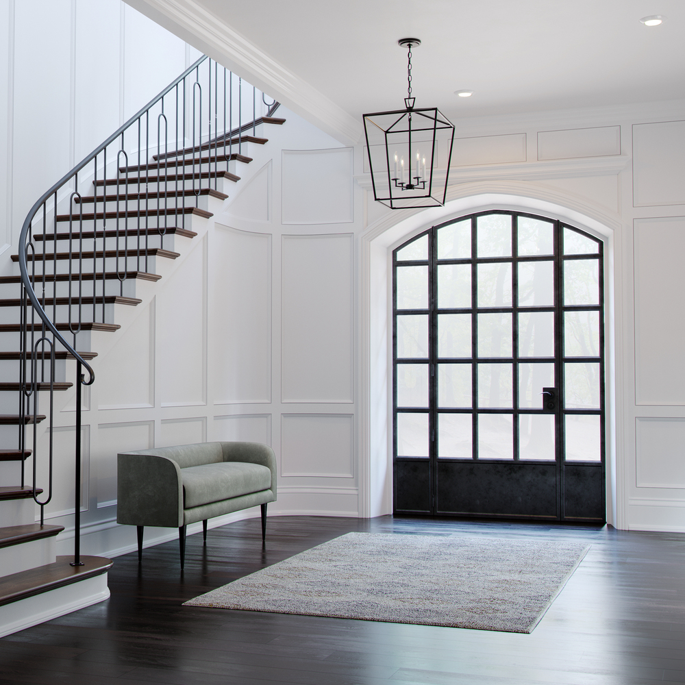 Modern, open-frame fixture with traditional form will complement any dining room, kitchen, or foyer