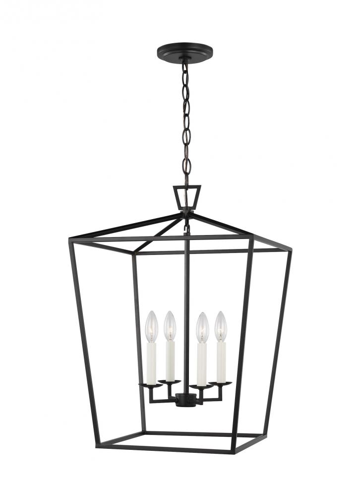 The Dianna contemporary lantern pendant by Visual Comfort Studio is offered in the Midnight Black, Satin Bronze or Brushed Nickel finish. The dark and transitional open frame encompass generously proportioned candelabra style bulbs. This updated silhouette brings a modern element to your cozy ambient lighting design.