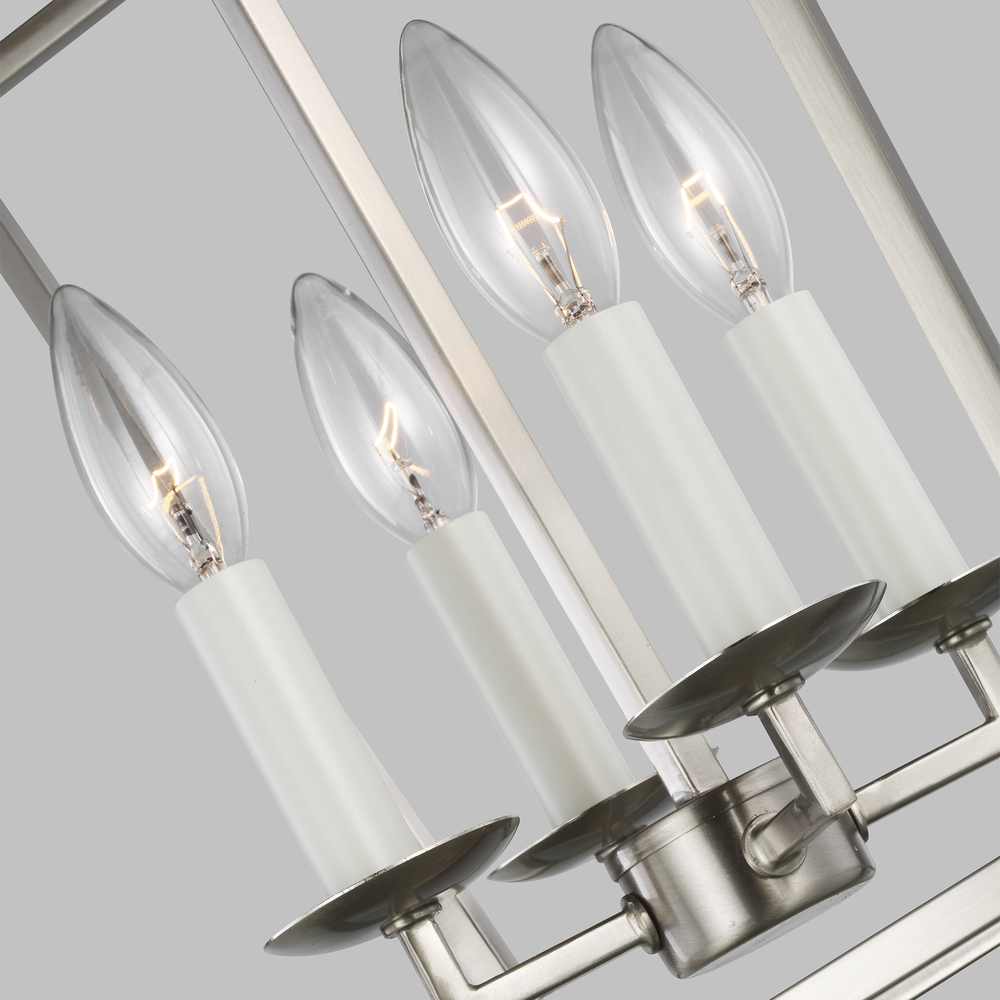 Modern, open-frame fixture with traditional form will complement any dining room, kitchen, or foyer