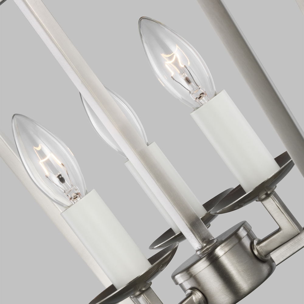 Modern, open-frame fixture with traditional form will complement any dining room, kitchen, or foyer