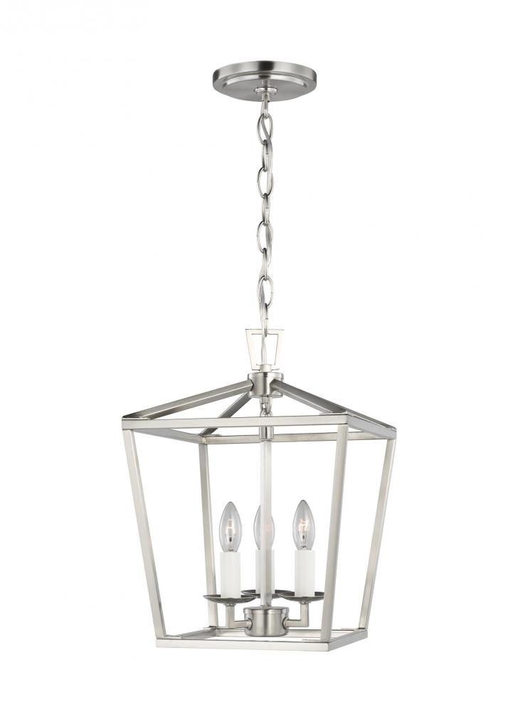 The Dianna three-light mini lantern by Visual Comfort Studio is offered in the Midnight Black, Satin Brass or Brushed Nickel finish. The dark and transitional open frame encompass generously proportioned candelabra style bulbs. This updated silhouette brings a modern element to your cozy ambient lighting design.