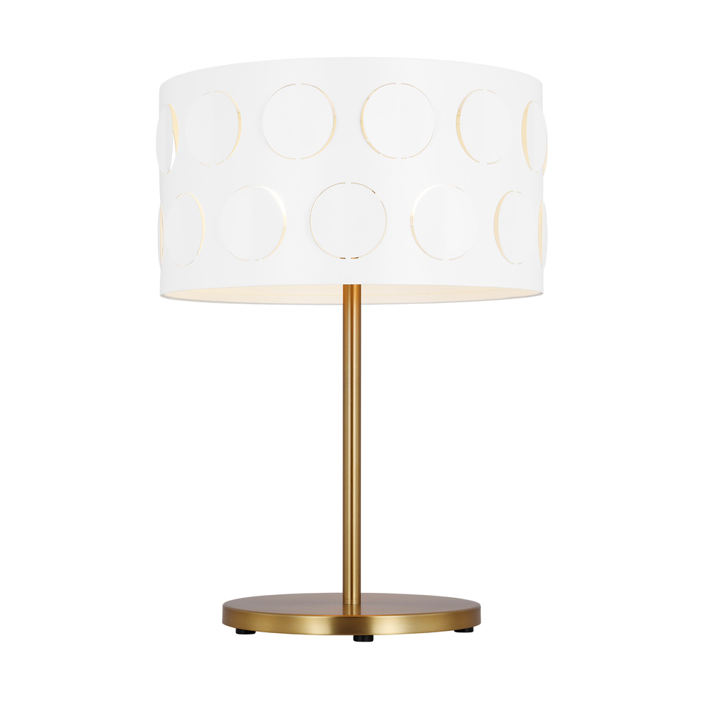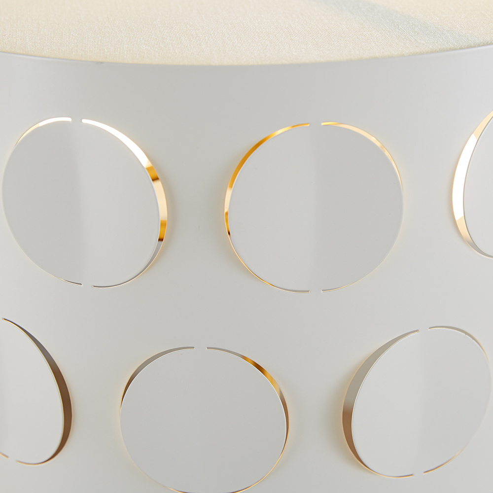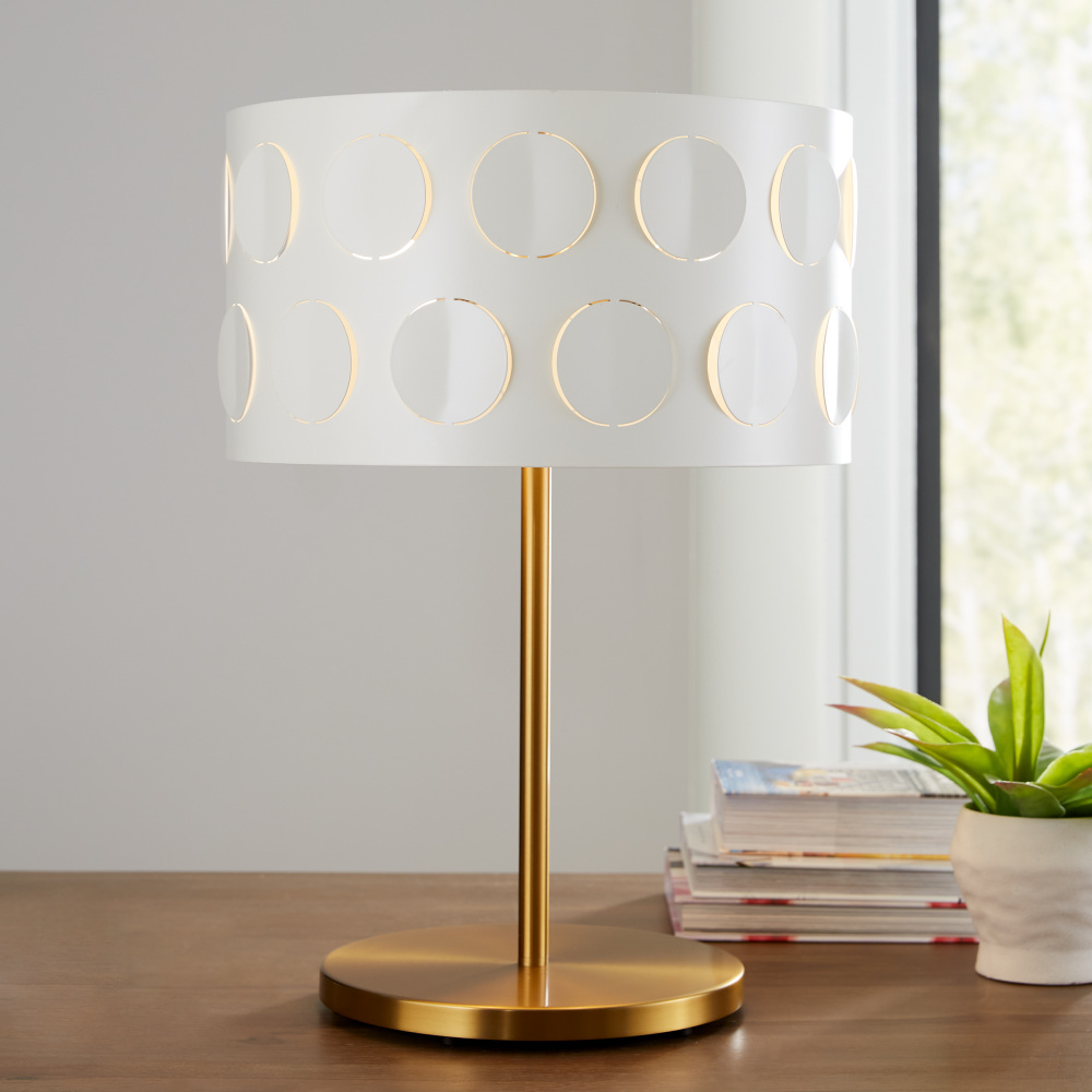 Dots are iconic to the kate spade brand—a simple and playful graphic motif. Dottie takes an iconic kate spade dot motif and cuts it into metal—creating a playful ambient light effect. A classic metal drum shade with an extra twist of perforated pattern. We’ve taken an iconic kate spade dot motif and pierced it into metal to create a base of a cylindrical table lamp. The base is illuminated—creating a playful ambient light effect in addition to the glowing drum shade. Use this fixture in any classic table lamp scenario—on either side of a sofa or bed, or in an office or entry as well.