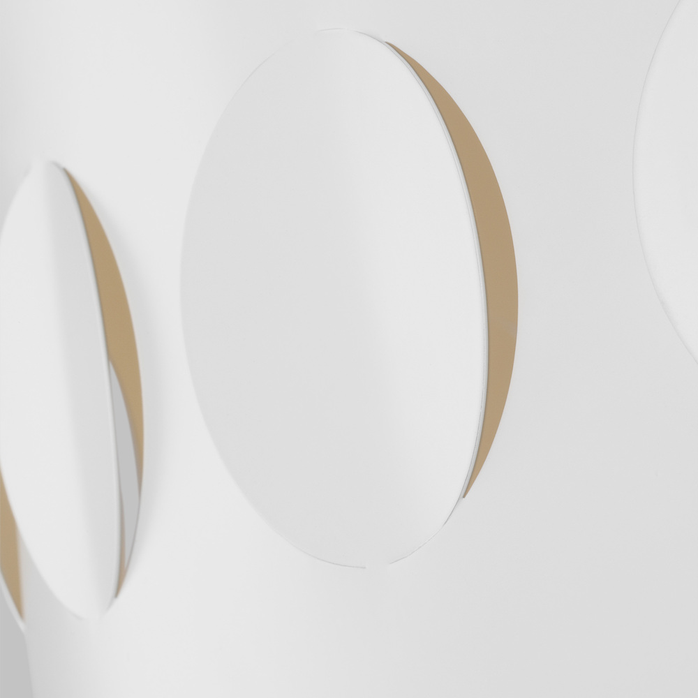 Dots are iconic to the kate spade brand—a simple and playful graphic motif. Dottie takes an iconic kate spade dot motif and cuts it into metal—creating a playful ambient light effect. A classic metal drum shade with an extra twist of perforated pattern. A matte white steel shade with an etched glass diffuser creates a gentle muted glow. Ideal for any hallway, foyer, bedroom, bathroom, or wherever overhead illumination is needed in transitional settings.