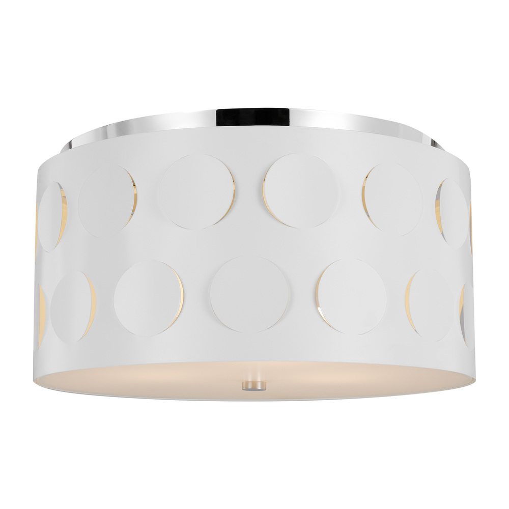 Dots are iconic to the kate spade brand—a simple and playful graphic motif. Dottie takes an iconic kate spade dot motif and cuts it into metal—creating a playful ambient light effect. A classic metal drum shade with an extra twist of perforated pattern. A matte white steel shade with an etched glass diffuser creates a gentle muted glow. Ideal for any hallway, foyer, bedroom, bathroom, or wherever overhead illumination is needed in transitional settings.