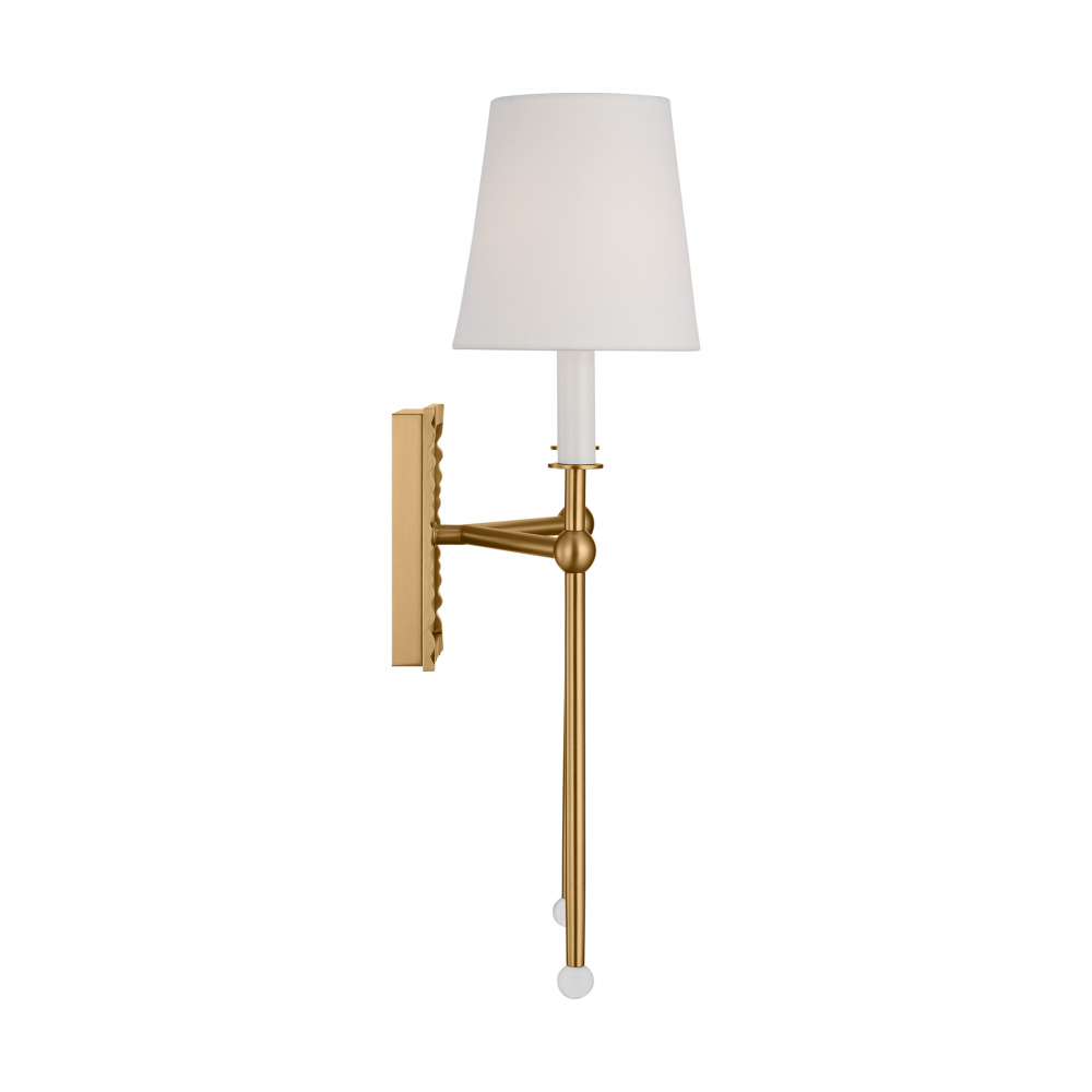 The Baxley wall sconce by Alexa Hampton exudes elegance, bringing modern elements to a traditional silhouette. With an exaggerated stem capped with a crystal ball, this sconce makes a bold, sleek statement and will align nicely in your hallway or as a bath vanity. The Alexa Hampton Collection brings a fresh take on traditional looks, beautiful and unique hand-applied finishes, and stunning, thoughtful, inspired pieces.