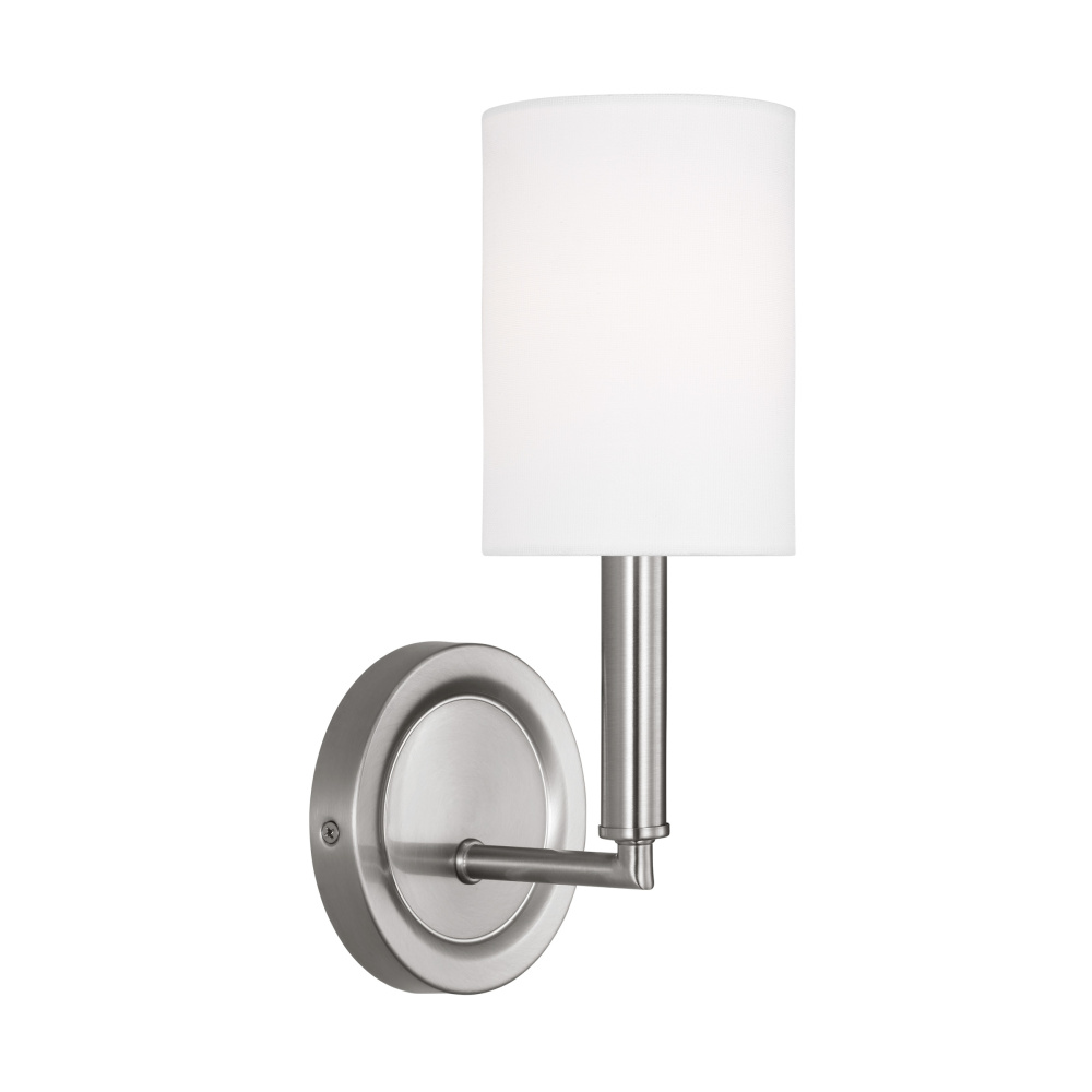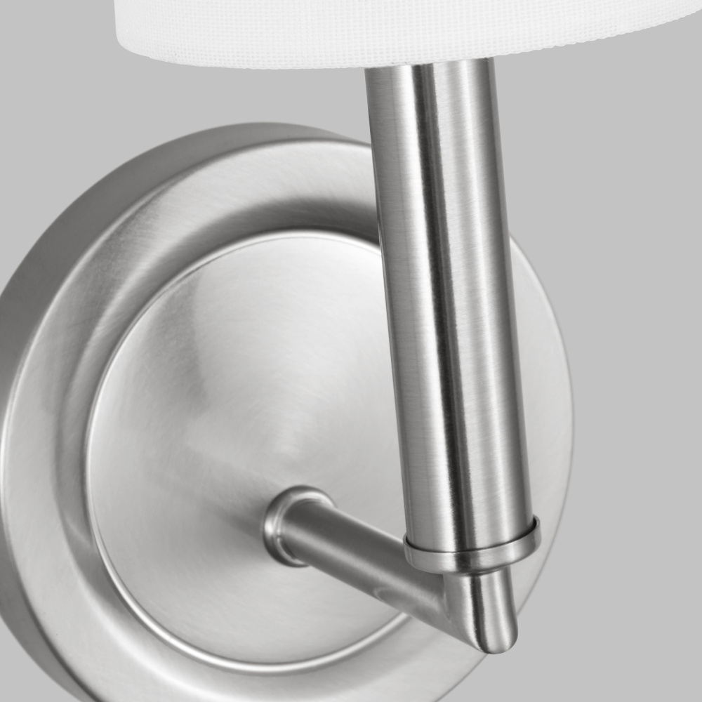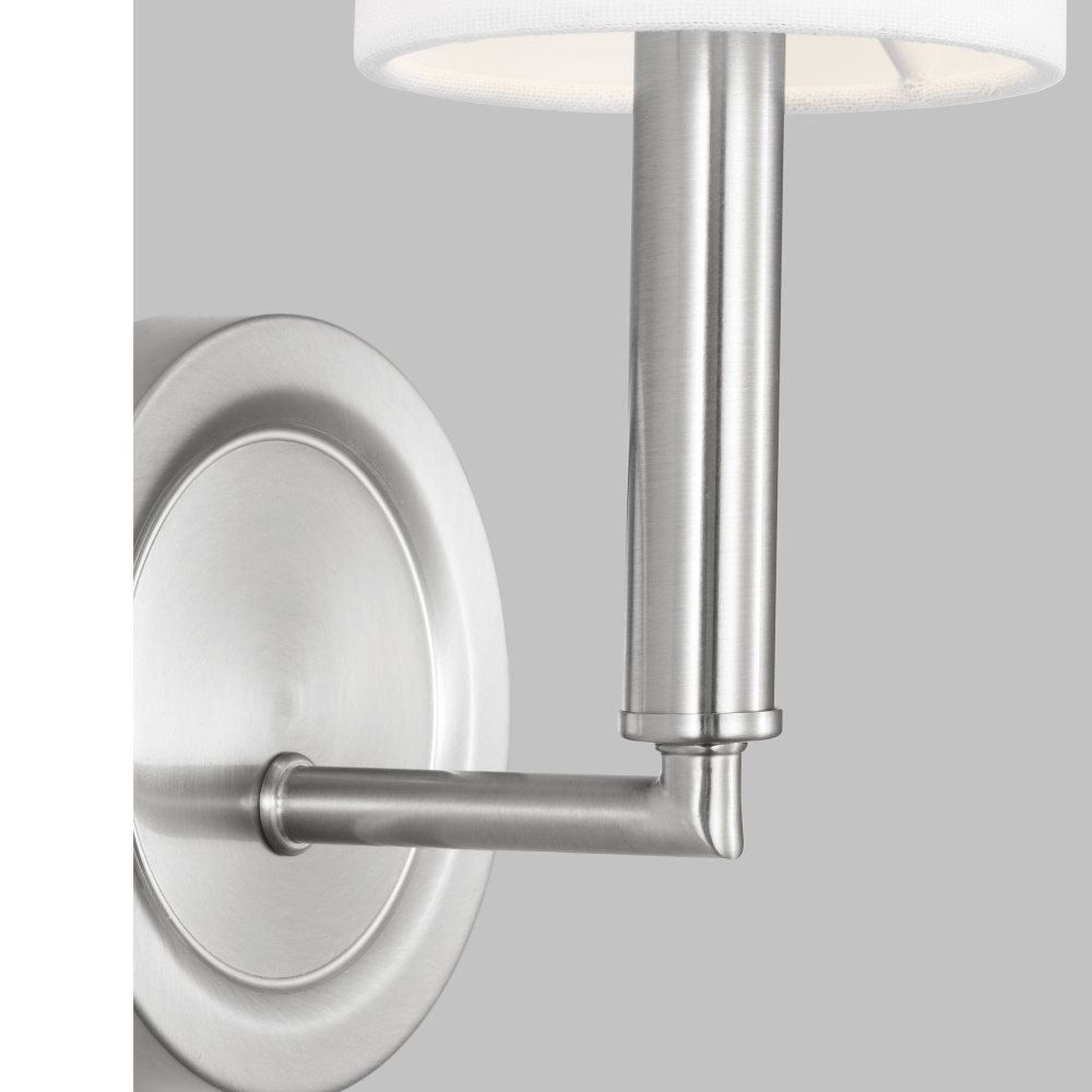 Designed by Drew & Jonathan Scott, Egmont is a classic design with clean lines and white linen shades, perfect for farmhouse or transitional style settings. It's made from metal featuring a wagon wheel body on the chandelier and a circular backplate on the wall sconce. The open framework at the top and bottom assures strong up-light. The overall style and multiple finishes work as well in a modern-farmhouse kitchen as they do in a vintage industrial loft.