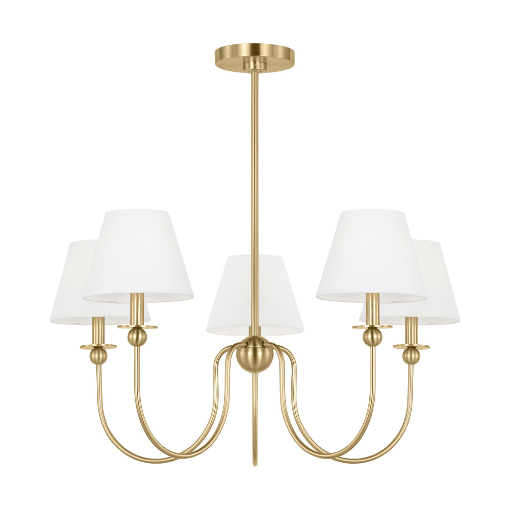 Crafted with Steel in a Satin Brass finish with white linen fabric shades