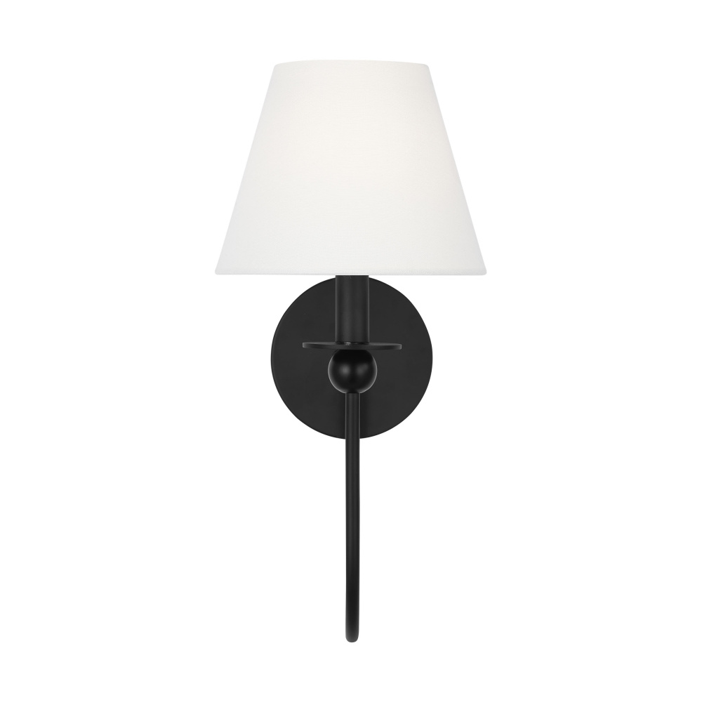 Crafted with Steel in a Midnight Black finish with white linen fabric shade