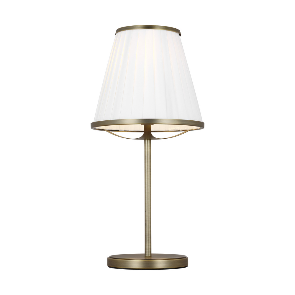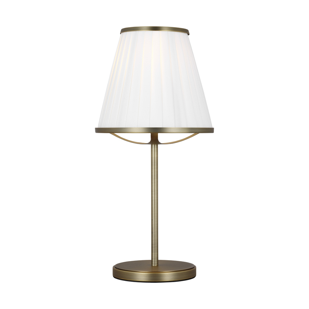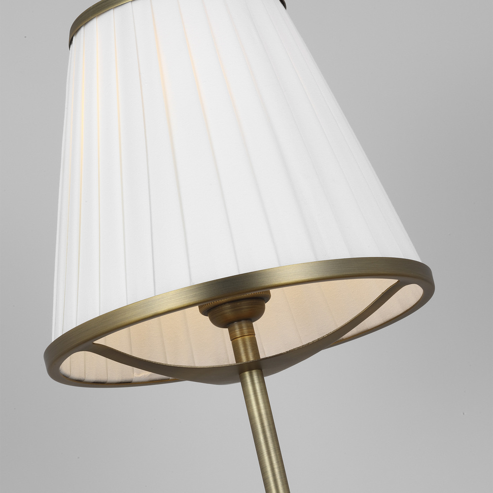 The Esther one light table lamp by Lauren Ralph Lauren is a transitional interpretation of a classic design. Esther has pleated shades that bring the visual interest to the collection, while a decorative yolk holds the shade to frame. Three different sconce silhouettes are included in the Ester series. Available in a Time Worn Brass or Polished Nickel finish.