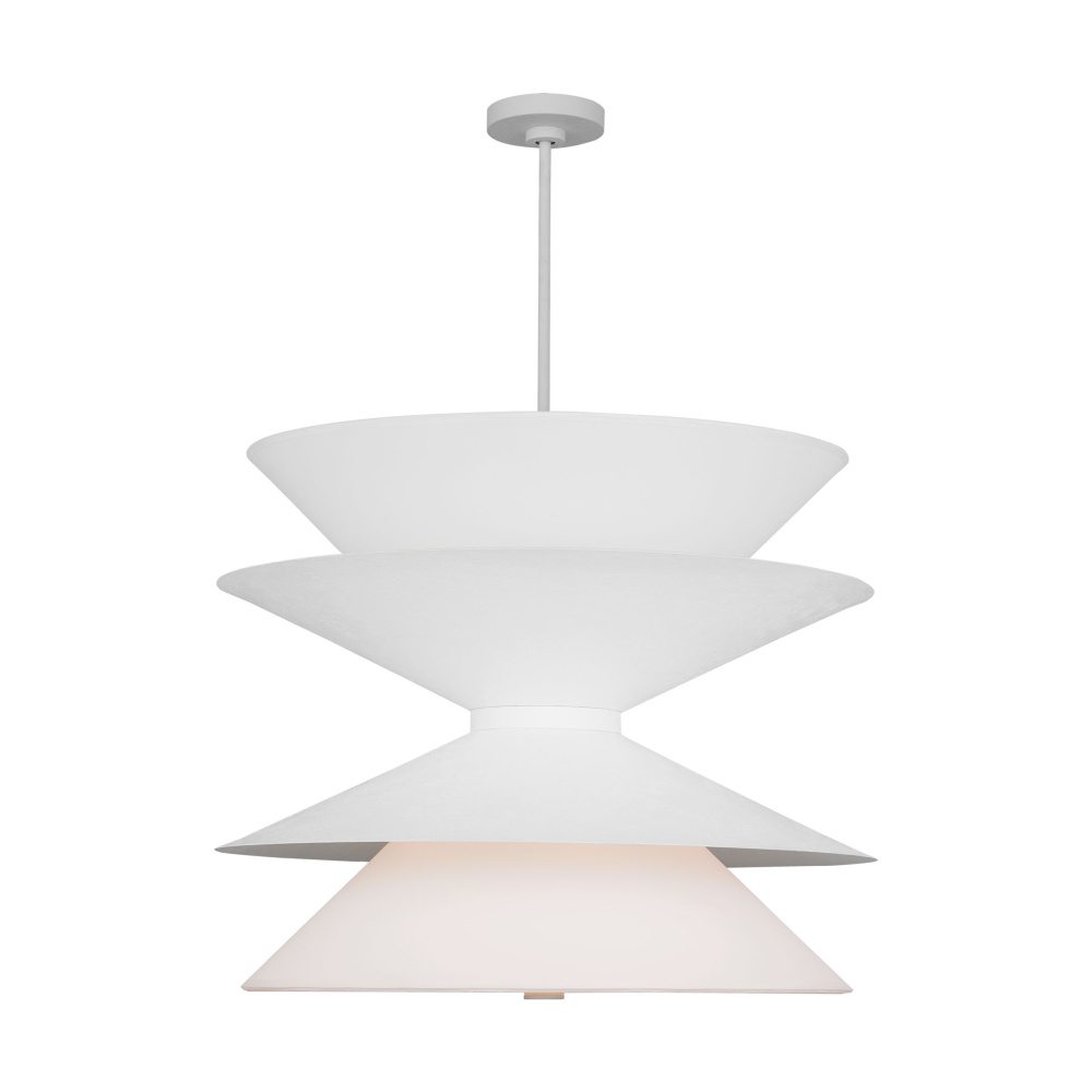 Chambord is comprised of layers of aluminum in varying sizes that direct the light down through a silk screen diffusor