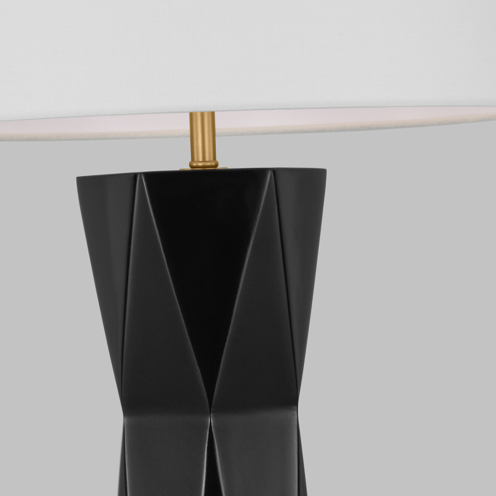 Fernwood is a multifaceted column table lamp in rich tones that gives visual dimension to a mid-century look, adding a refined modern note to your space. It features a square base with a gleaming gold finish crafted from resin, and it showcases a textured design for an Art Deco appeal. Fernwood is capped with a white line shade dispersing light from a medium-base bulb (included).