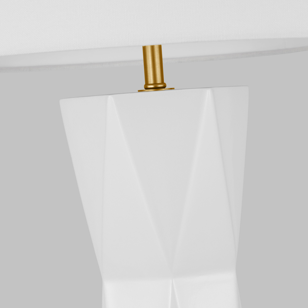 Fernwood is a multifaceted column table lamp in rich tones that gives visual dimension to a mid-century look, adding a refined modern note to your space. It features a square base with a gleaming gold finish crafted from resin, and it showcases a textured design for an Art Deco appeal. Fernwood is capped with a white line shade dispersing light from a medium-base bulb (included).