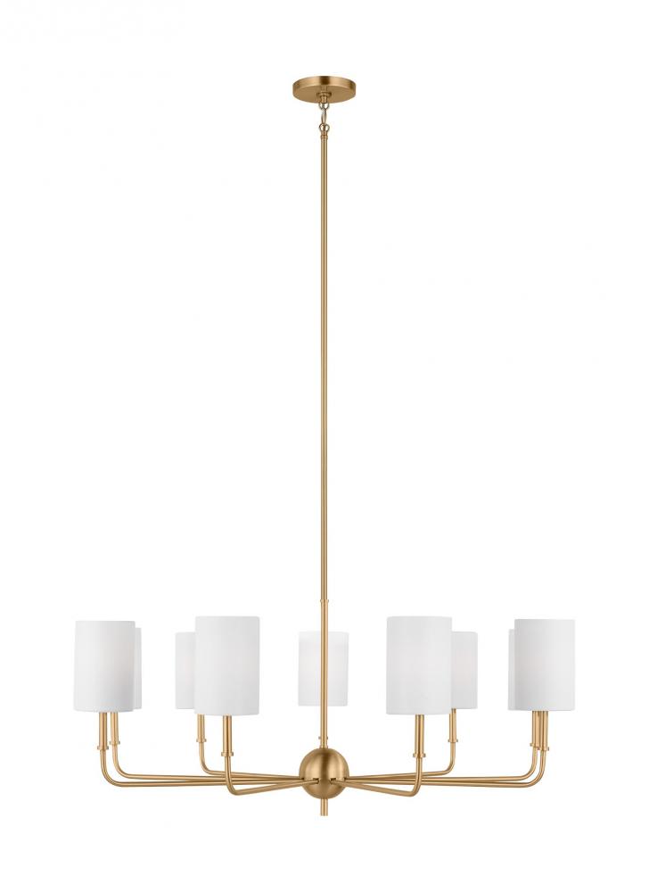The Foxdale nine light single tier chandelier in Satin Brass encompasses the new traditional style with flawless execution. Refined and clean-lined, this classic silhouette is timeless without being stuffy. Perfectly transitional, this collection can be placed in any home regardless of style. Topped with White Linen Shades to complete the design.