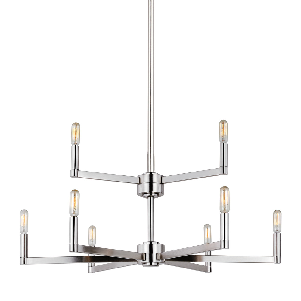 The Fullton nine light multi-tier chandelier in brushed nickel silver is sleek, contemporary, and uber minimalistic. Visual interest is created using a mix of rectangular and round frames, a subtle design detail. Although this collection is contemporary, it can be mixed in with variety of collections with ease.