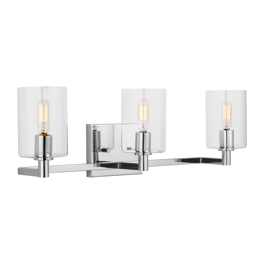 The Fullton three light vanity fixture in Chrome is sleek, contemporary, and uber minimalistic. Visual interest is created using a mix of rectangular and round frames, a subtle design detail. Although this collection is contemporary, it can be mixed in with variety of collections with ease.