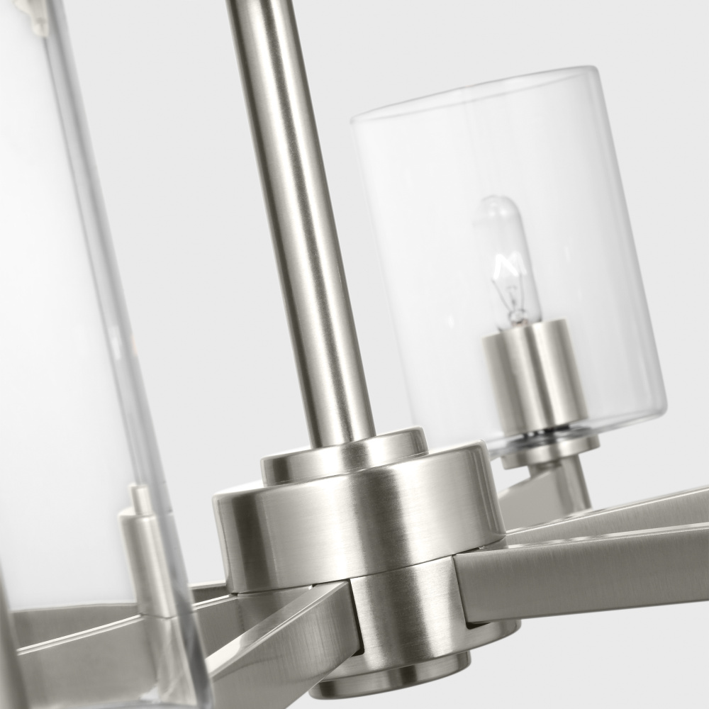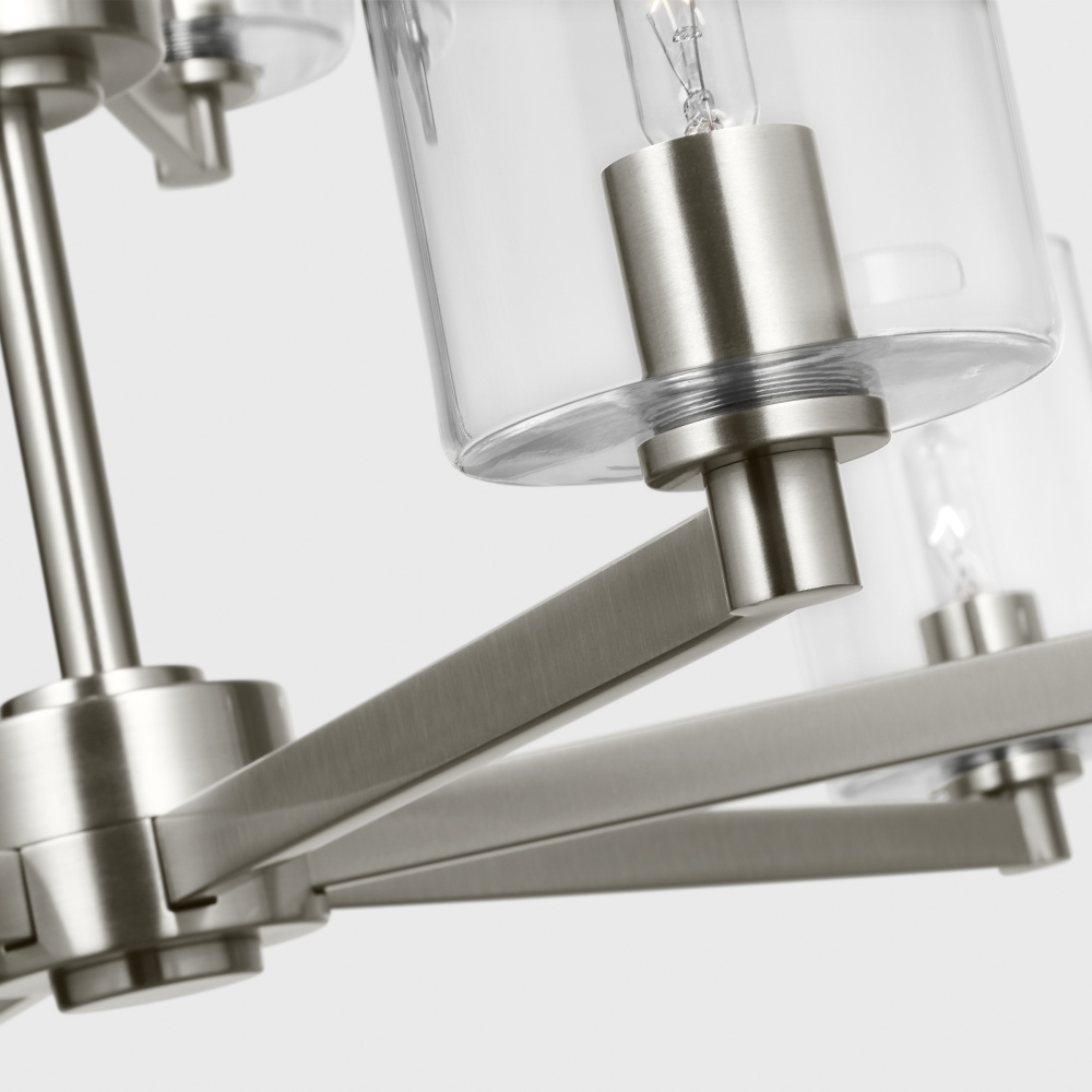 Crafted with Steel in a Brushed Nickel finish with Glass shades