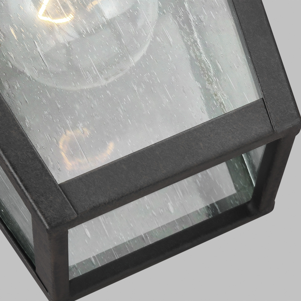 The Sean Lavin Galena one light outdoor wall fixture in sable creates a warm and inviting welcome presentation for your home's exterior. Galena is a Europe-inspired classic lantern. Simple and refined, Galena features a gently curved hook detail atop a vented, square-off roofline, and candle tubes floating within the tapered clear glass shades. Galena is a warm, welcoming silhouette offered in our NEW Sable finish.