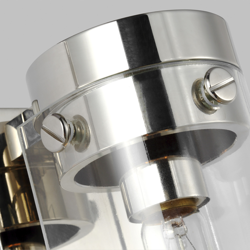 Simple cylindrical glass accented by large machined bolt hardware.
