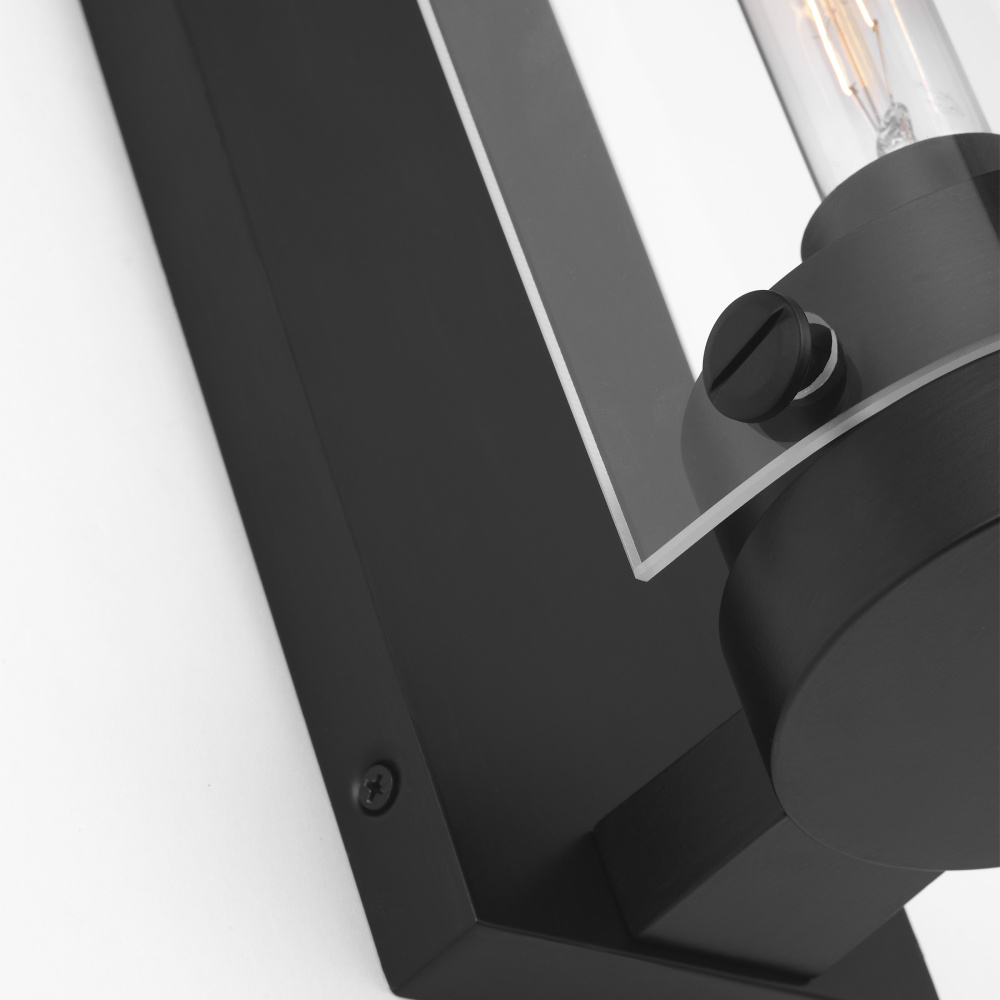 Crafted with Steel in a Aged Iron finish with clear glass shade