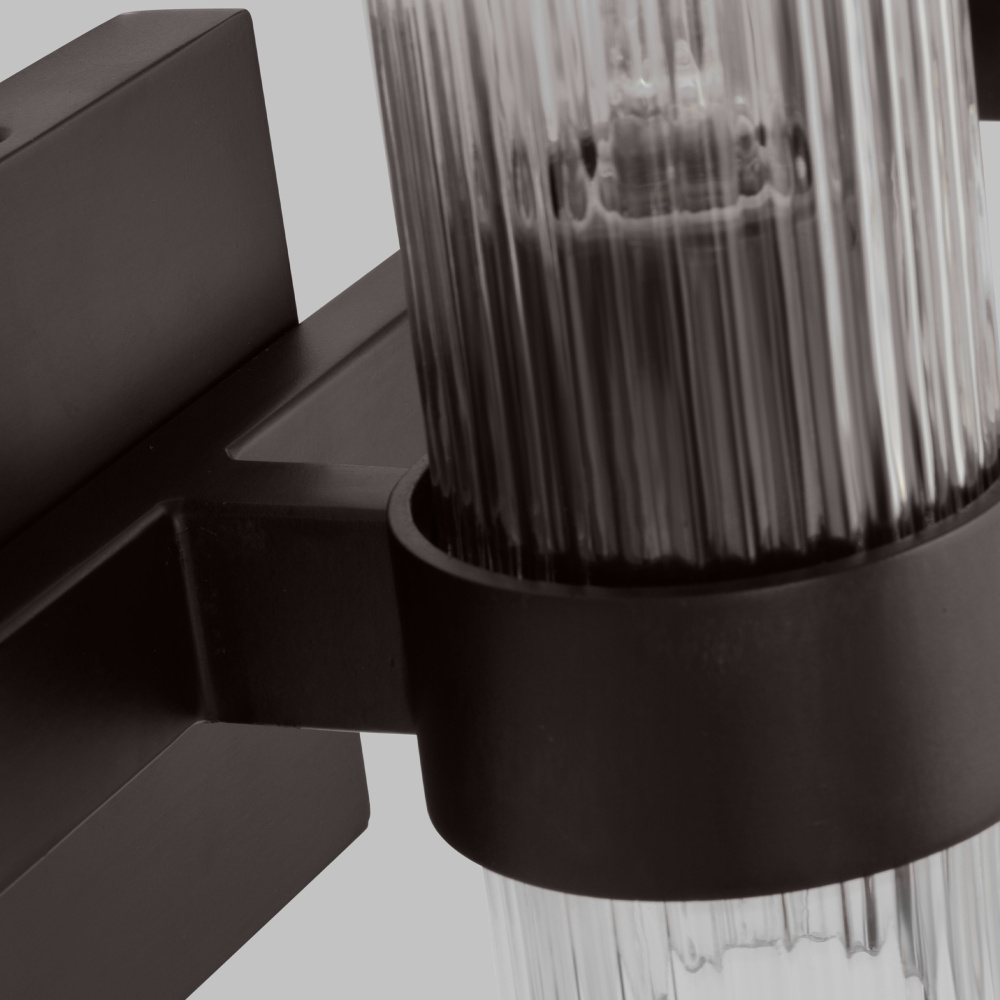 Designed by Chapman & Myers, the Geneva three-light vanity fixture in Aged Iron offers shadow-free lighting in your powder room, spa, or master bath. It is the perfect way to achieve your home's desired fashion or functional needs. A fluted shade forms an elegant, dynamic silhouette balanced by a strong frame of Aged Iron, Burnished Brass, or Polished Nickel.