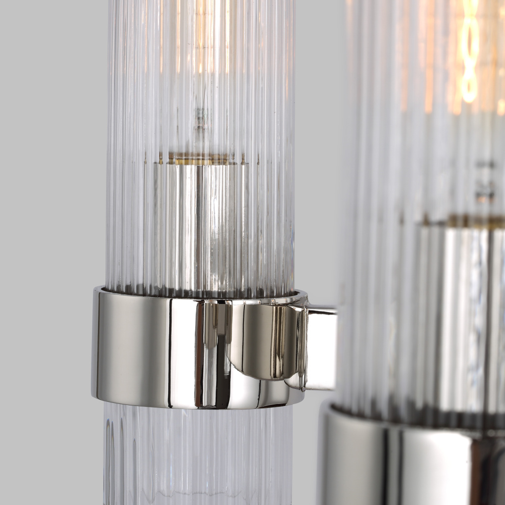 Designed by Chapman & Myers, the Geneva eight-light single-tier chandelier in Polished Nickel is the perfect way to achieve your desired fashion or functional needs in your home. A fluted shade forms an elegant, dynamic silhouette balanced by a strong frame of Aged Iron, Burnished Brass, or Polished Nickel.
