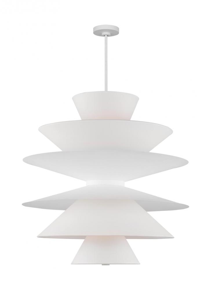 Chambord is comprised of layers of aluminum in varying sizes that direct the light down through a silk screen diffusor