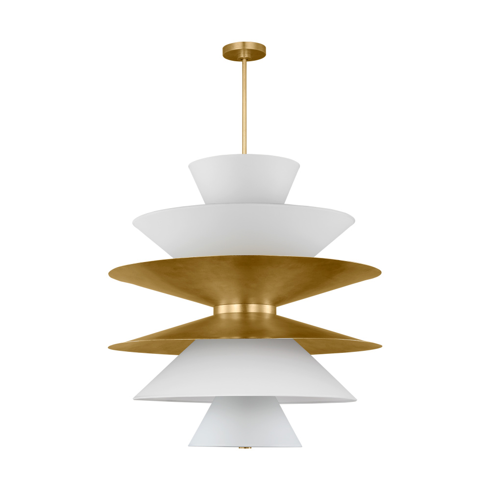 Chambord is comprised of layers of aluminum in varying sizes that direct the light down through a silk screen diffusor