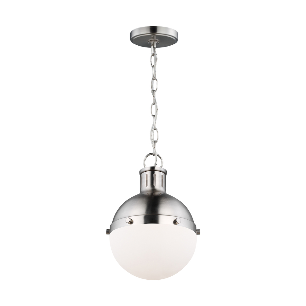 The Hanks medium modern pendant is offered in the Midnight Black/Satin Bronze, Antique Brushed Nickel, Satin Bronze, or Brushed Nickel finish. This globe style pendant is crafted with an antique finish and white glass shade, offering an approachable style with direct lighting. The multiple use of color and finishes exude mid-century modern style to help entice any updated space.