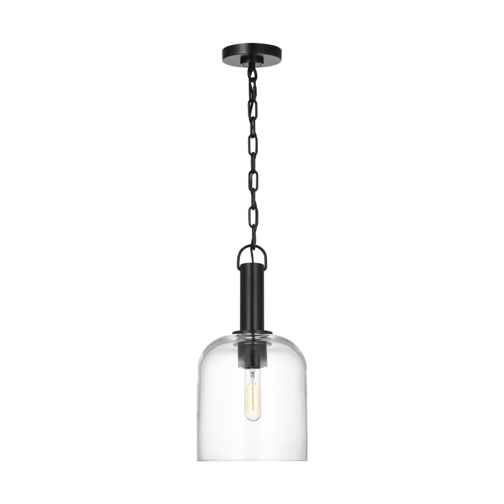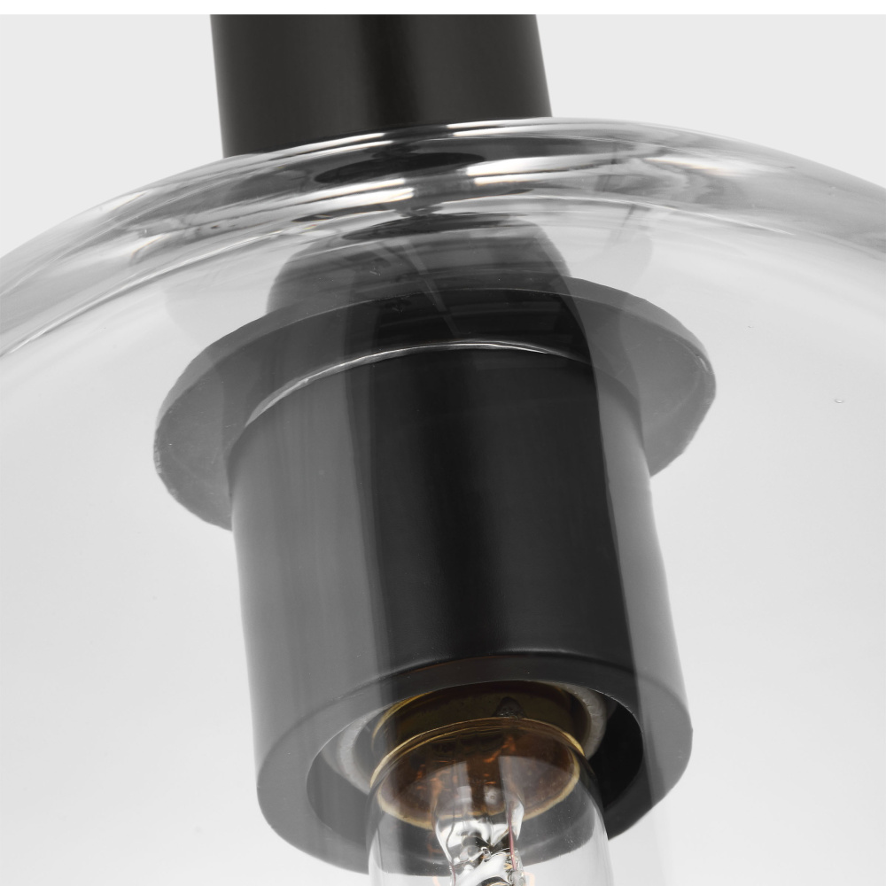Crafted with Steel in a Aged Iron finish with clear glass shade