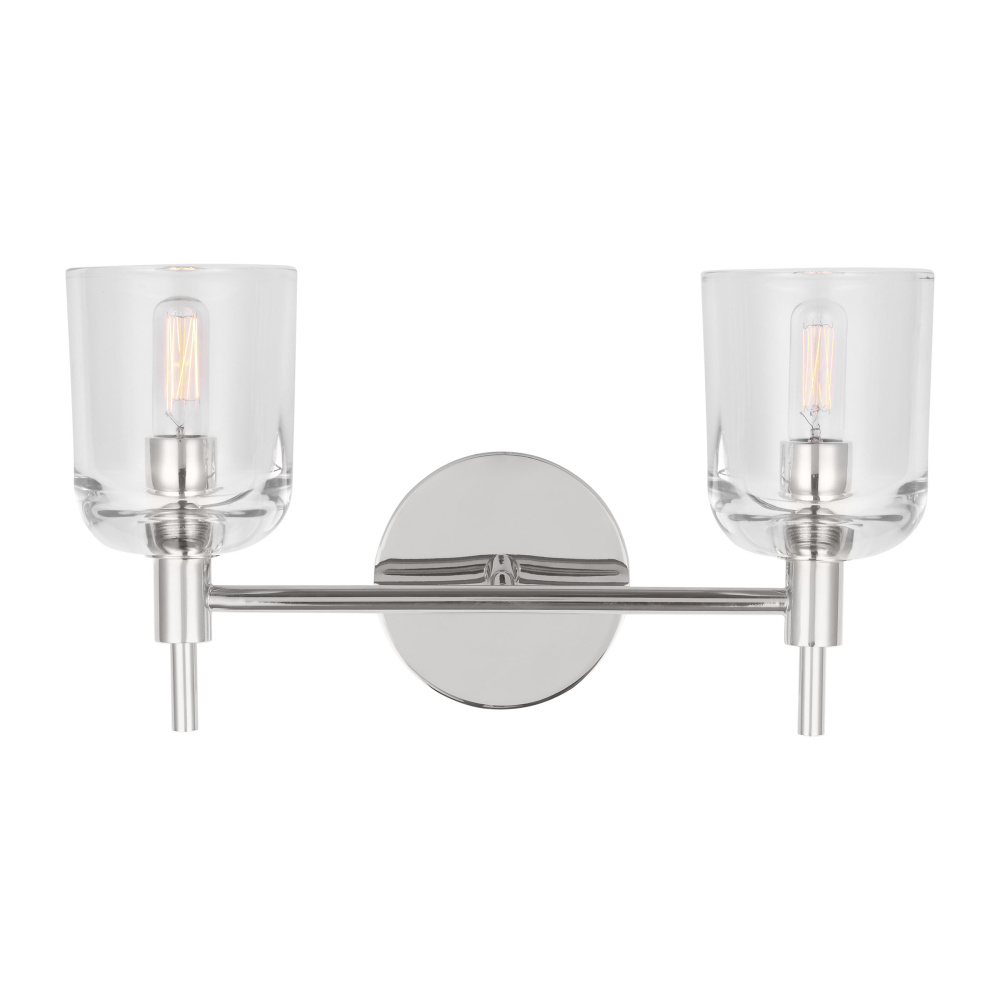 Crafted with Steel in a Polished Nickel finish with clear glass shades