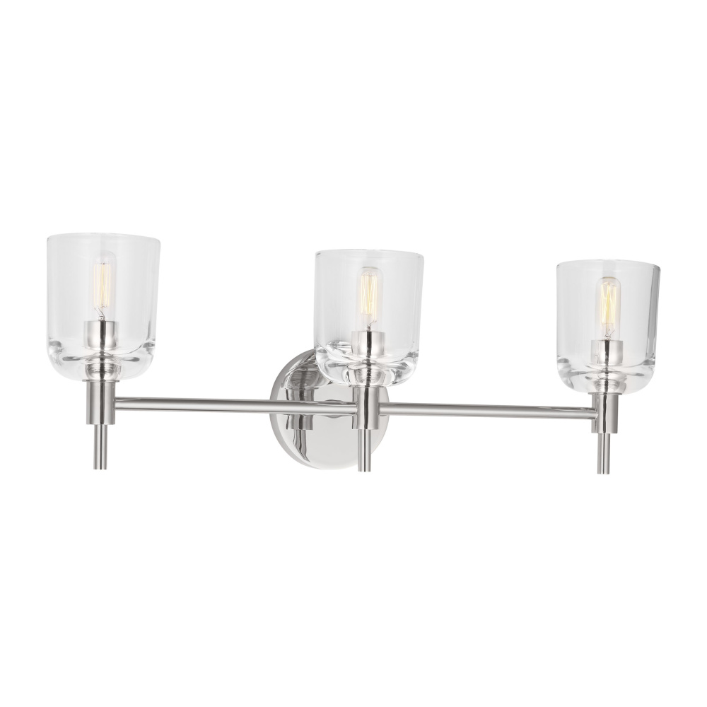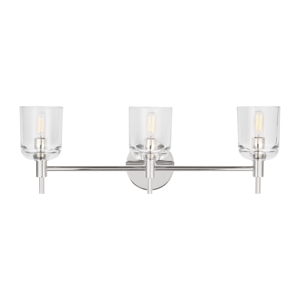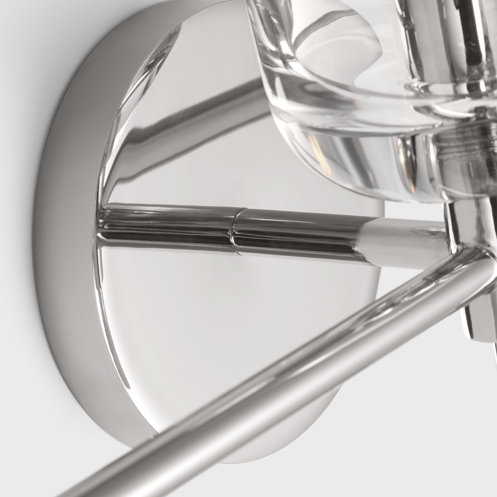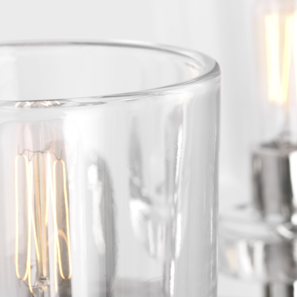 Crafted with Steel in a Polished Nickel finish with clear glass shades