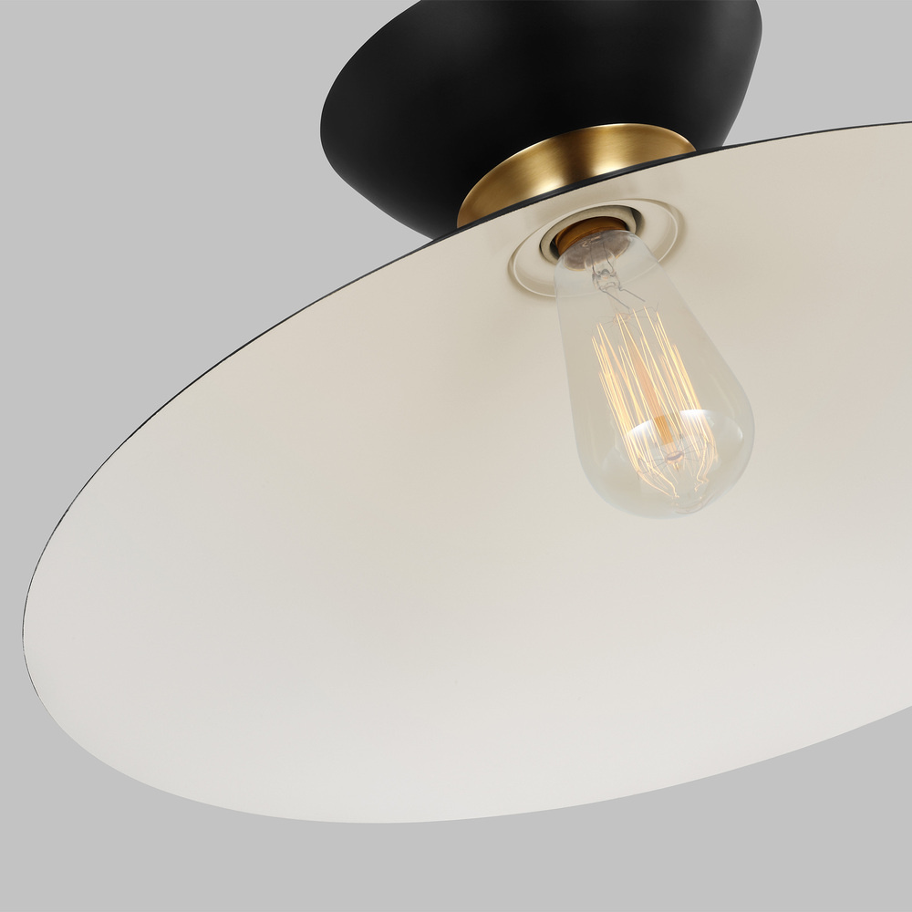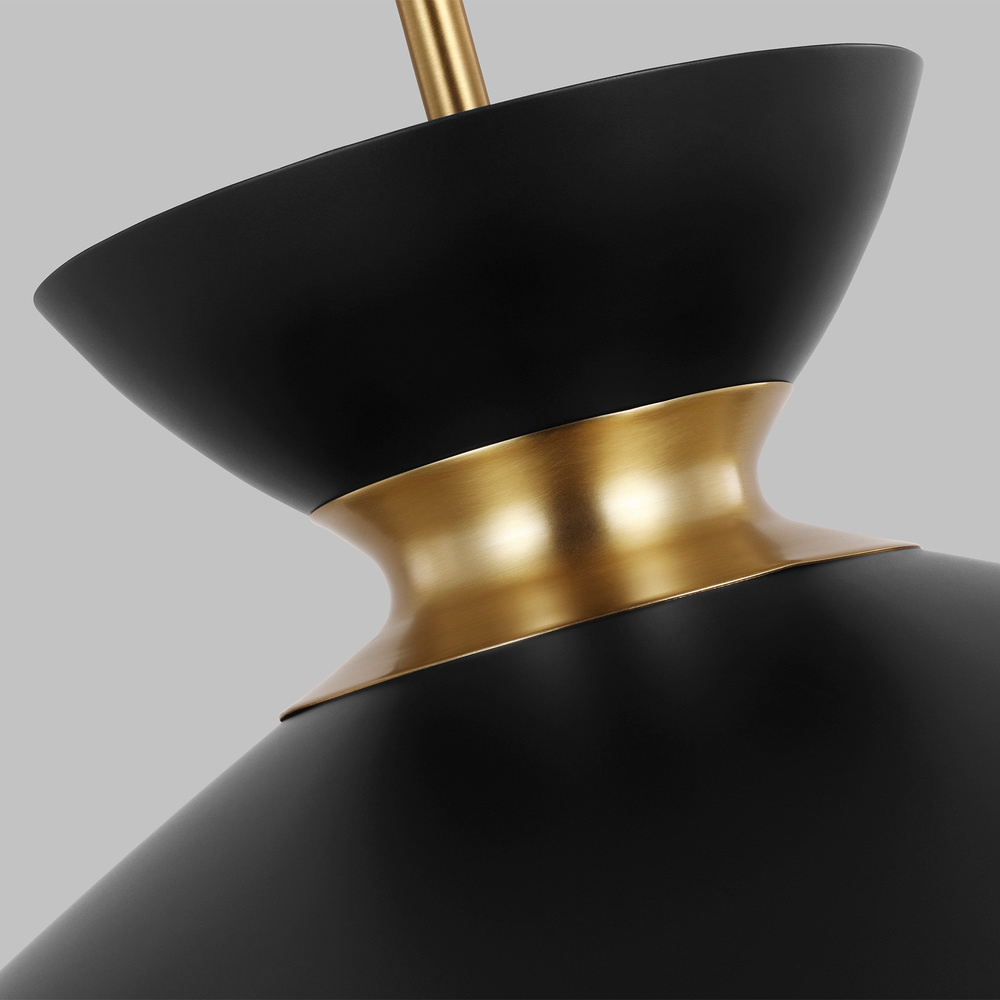 Heath is a chic pendant crafted of metal and a center wrap detail. The cleanness of the contemporary look gives the fixtures a slightly industrial feel. Available in wide or narrow design options. Notice how the top and bottom frame contrast with the metal band. The Heath one light indoor pendant in Midnight Black with Burnished Brass features modern mid-century refinement and luxe materials for a minimalist aesthetic.