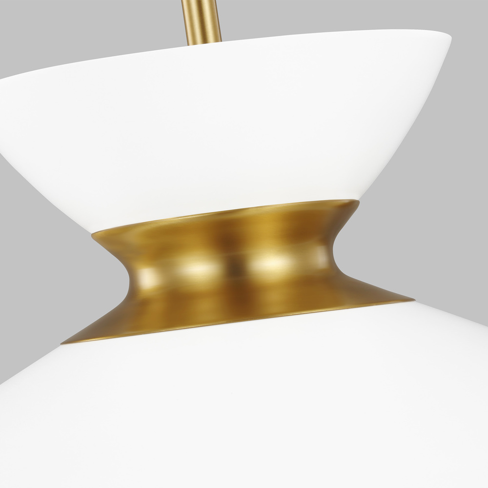 Heath is a chic pendant crafted of metal and a center wrap detail. The cleanness of the contemporary look gives the fixtures a slightly industrial feel. Available in wide or narrow design options. Notice how the top and bottom frame contrast with the metal band. The Heath one light indoor pendant in Midnight Black with Burnished Brass features modern mid-century refinement and luxe materials for a minimalist aesthetic.