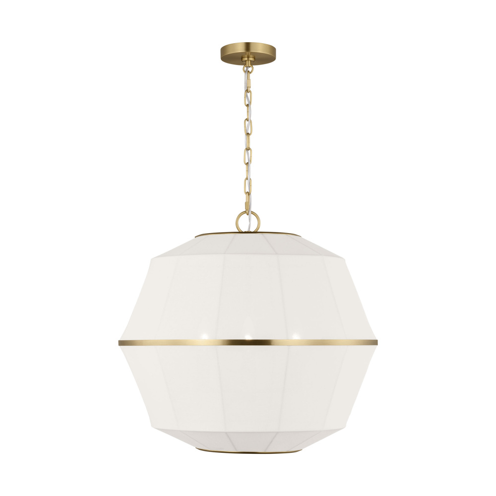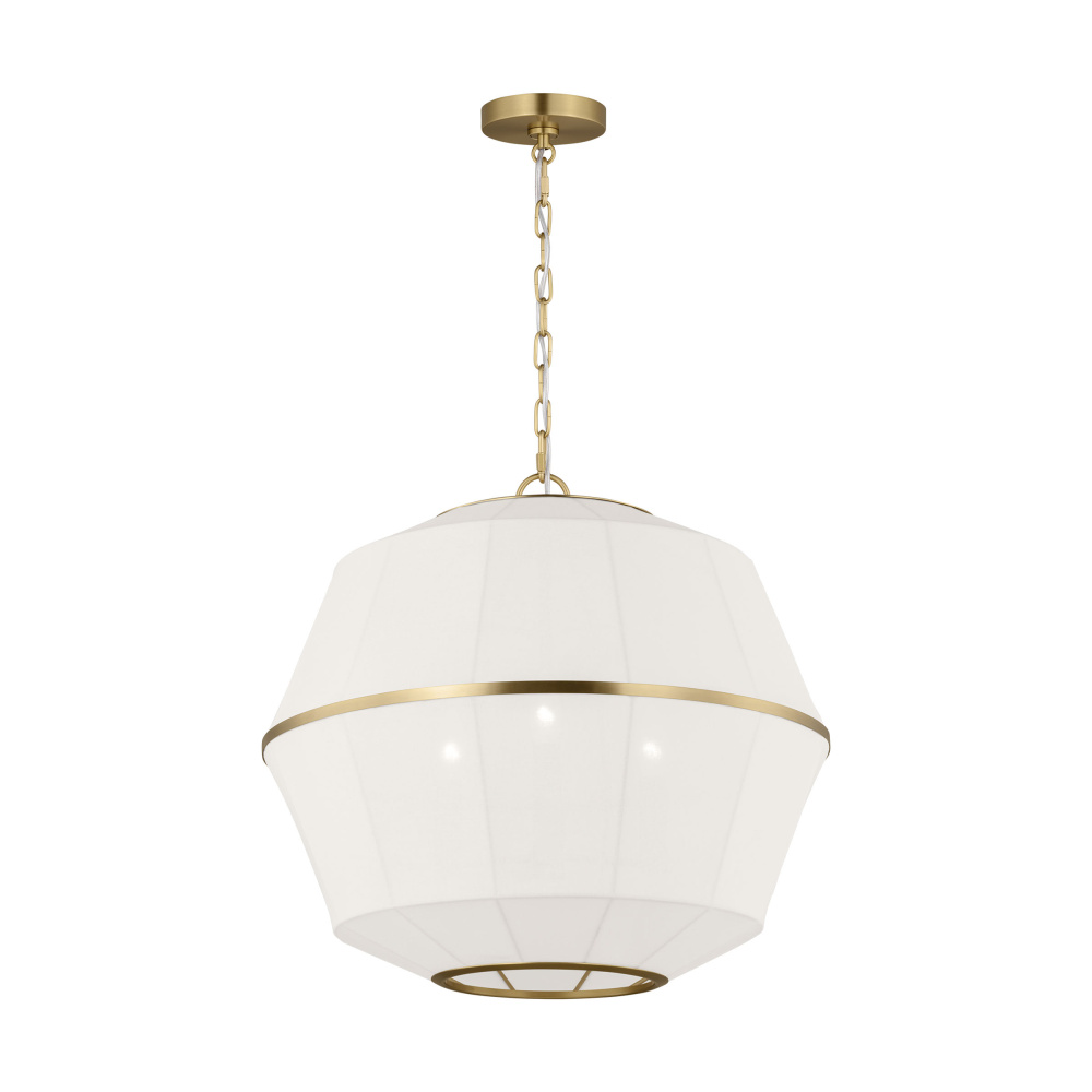 Crafted with Steel in a Burnished Brass finish with white linen shades