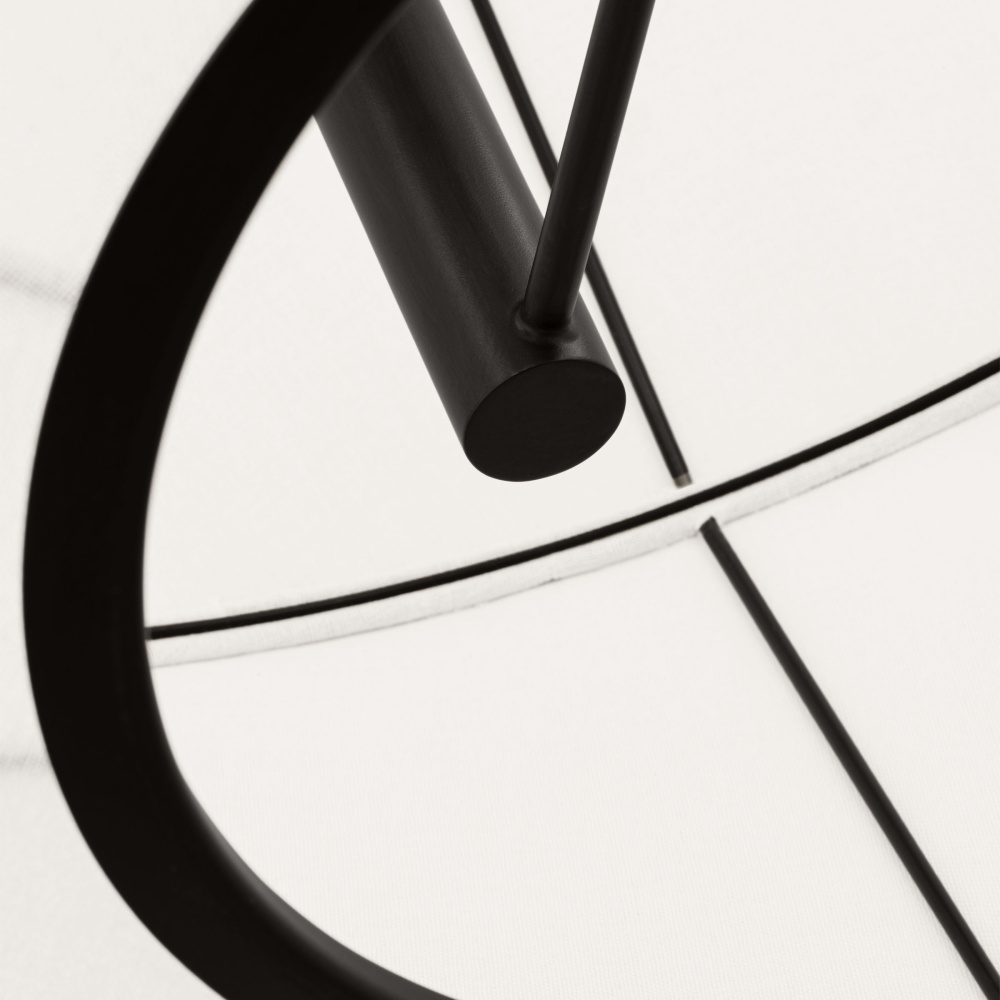 Showcasing multifaceted geometry, the Hikari series by Ellen DeGeneres is inspired by her personal collection of sculptural lighting. Grounded by the contrast of hard and soft materials, the aged iron and white linen fixture radiates soft, diffused light. The Hikari pendant can be used in a dining room, living room, bedroom or entryway.