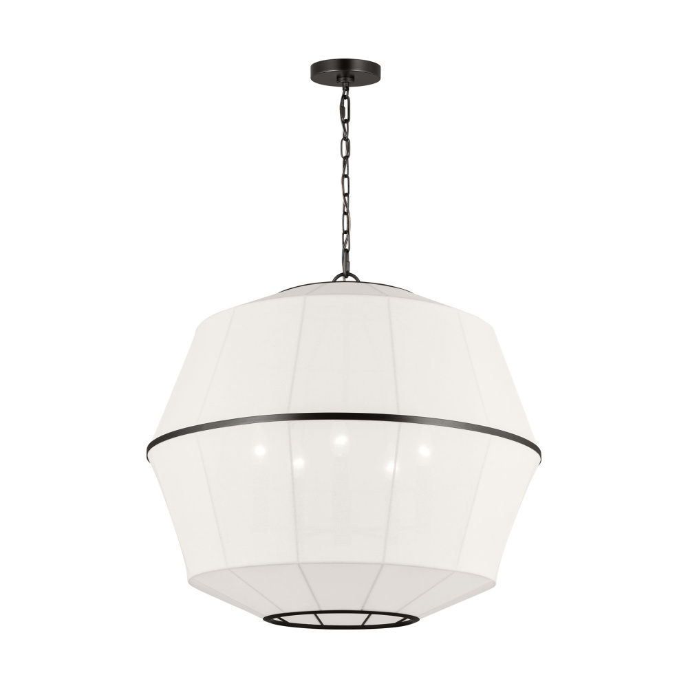 Crafted with Steel in a Aged Iron finish with white linen shades