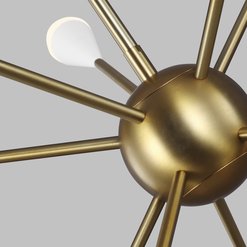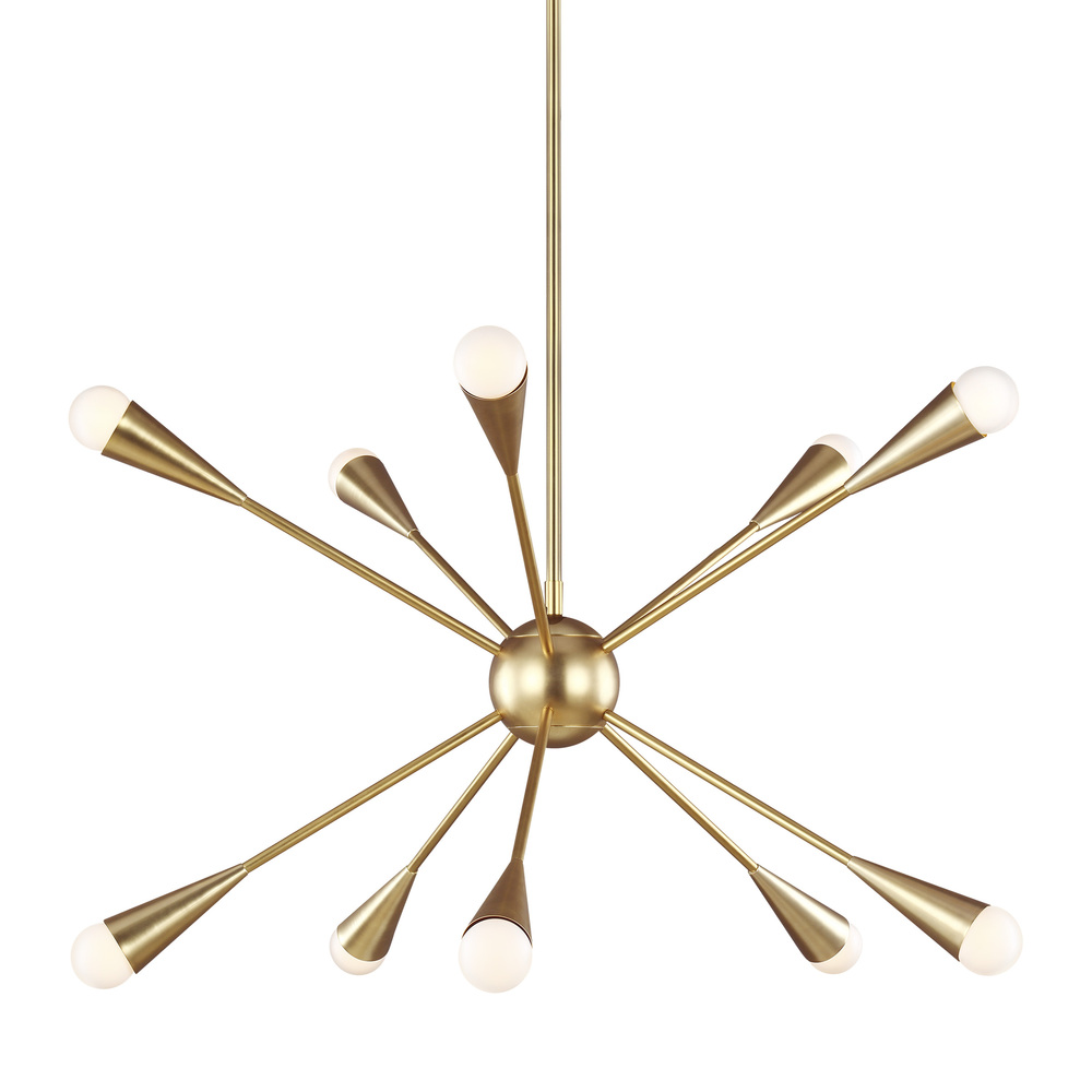 The Jax ten light single-tier chandelier in burnished brass enhances the beauty of your home with ample light and style to match today's trends. Jax channels the celestial allure of a starburst silhouette, celebrating its iconic status within classic art deco design. Three finish options - including Burnished Brass, Polished Nickel and a stunning two-tone Midnight Black/Burnished Brass combination - make a refreshingly modern statement.