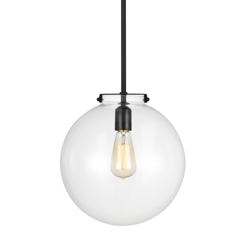 The Kate cone pendant is offered in the Satin Brass, Midnight Black, or Brushed Nickel finish. The flared, clear glass shade suspended from a linked chain defines sleek and simple, offering a chance to show-off any style bulb of your choice. The versatility of this fixture makes for a great transitional piece when changing your design or color themes.