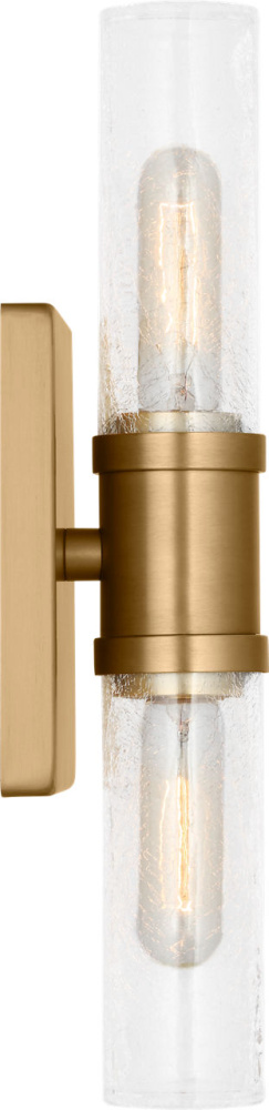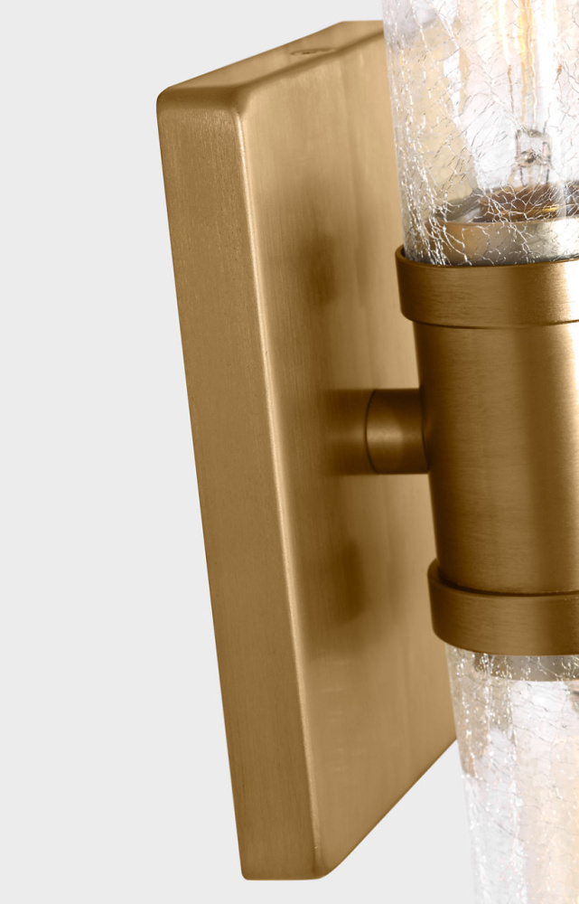 Sleek and modern, this 2-Light bath series pairs a square backplate With tubular clear crackle glass shade. The Keaton two light vanity fixture provides abundant light for your bath vanity, while adding a layer of today's style to your interior design.