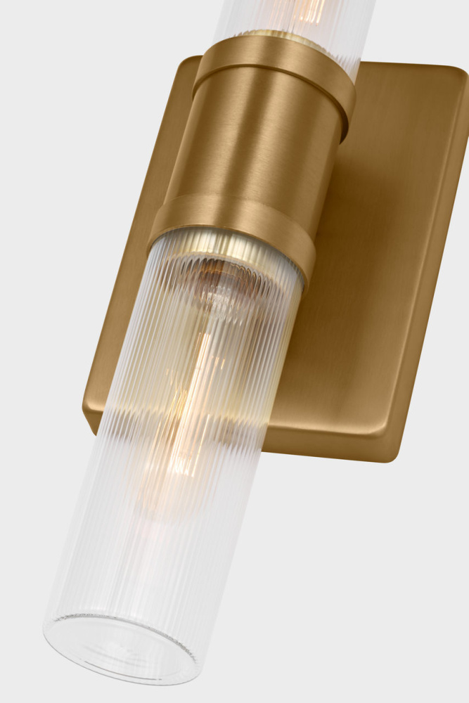 Sleek and modern, this 2-Light bath series pairs a square backplate With tubular clear fluted glass shade. The Keaton two light vanity fixture provides abundant light for your bath vanity, while adding a layer of today's style to your interior design.
