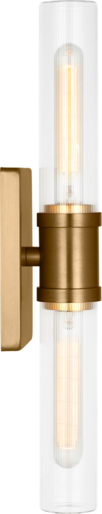 Sleek and modern, this 2-Light bath series pairs a square backplate With tubular clear fluted glass shade. The Keaton two light vanity fixture provides abundant light for your bath vanity, while adding a layer of today's style to your interior design.