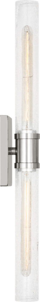 Sleek and modern, this 2-Light bath series pairs a square backplate With tubular clear crackle glass shade. The Keaton two light vanity fixture provides abundant light for your bath vanity, while adding a layer of today's style to your interior design.