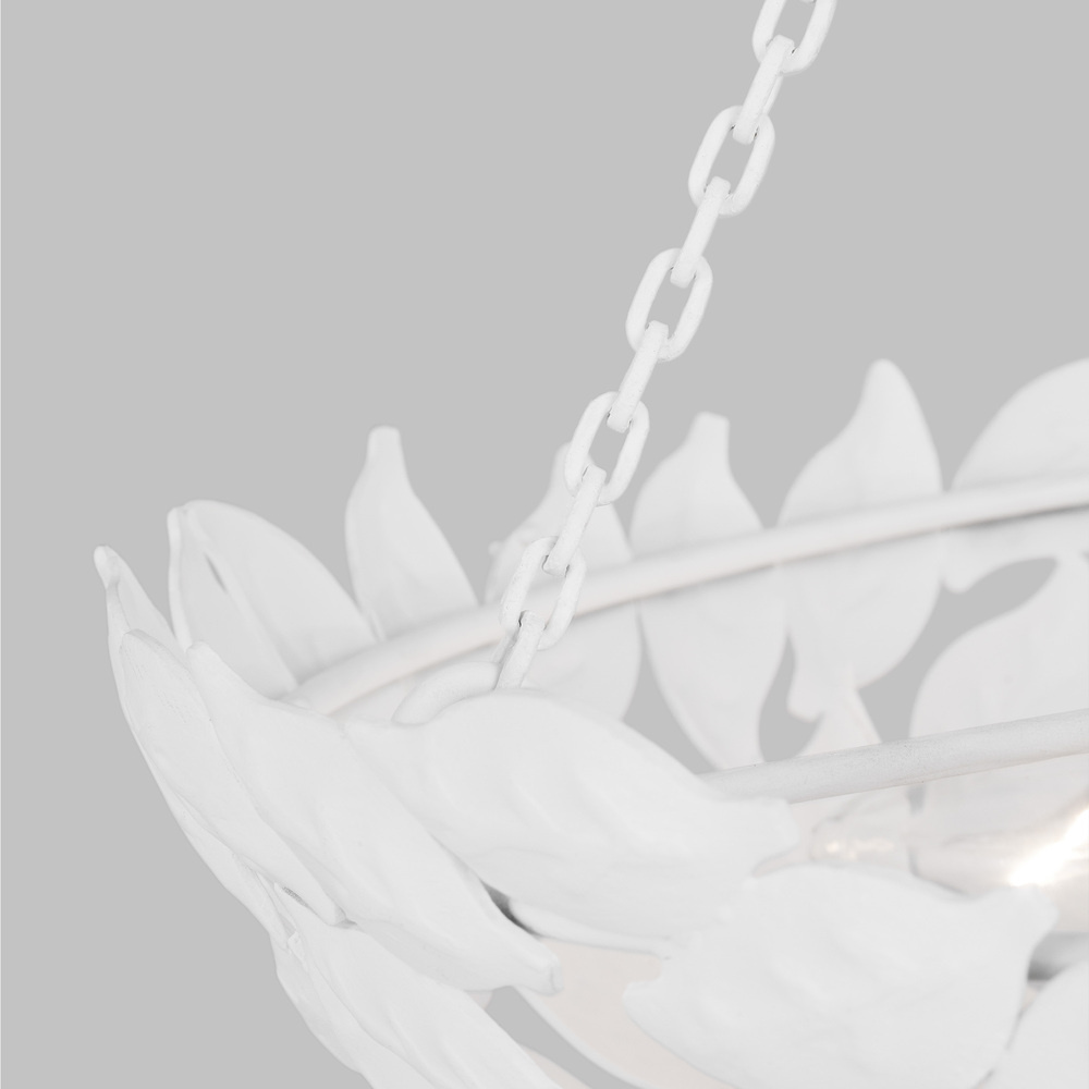 Drawing inspiration from a classic bowl pendant and nature. The Kelan three light semi flush by Alexa Hampton features a leaf motif, detailed by hand in a stunning display that captivates the design. Kelan is a soft, feminine contemporary piece that is beautiful in any space. Available sizes include a small, medium and large lantern.